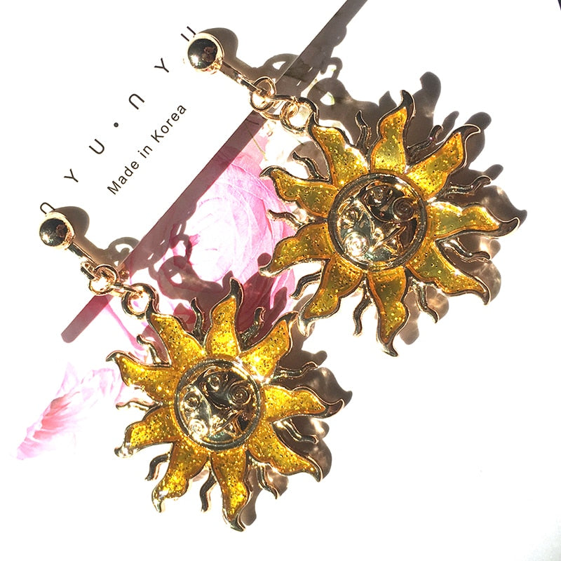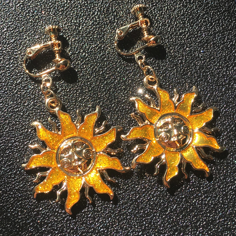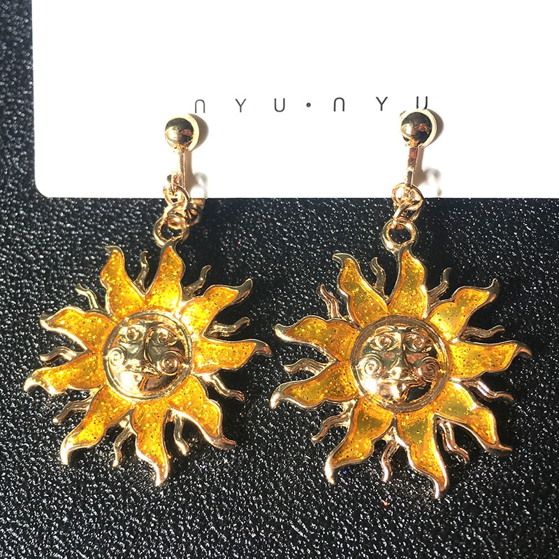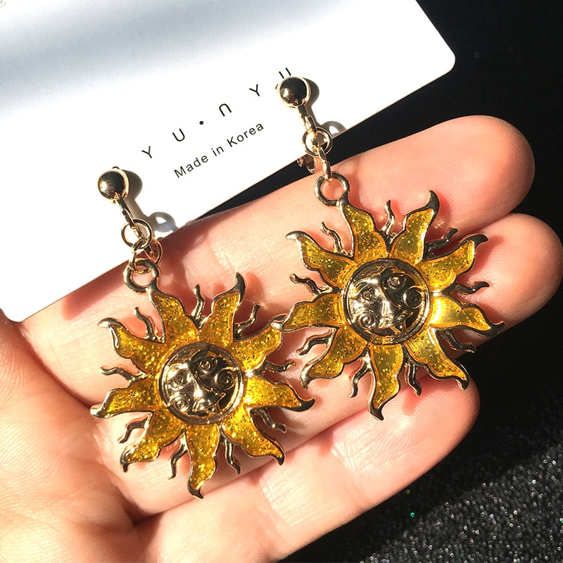 Pendientes de moda: pendientes de dios del sol sin agujero, pendientes de clip dorados, pendientes de sol sin perforación, pendientes minimalistas, joyería
