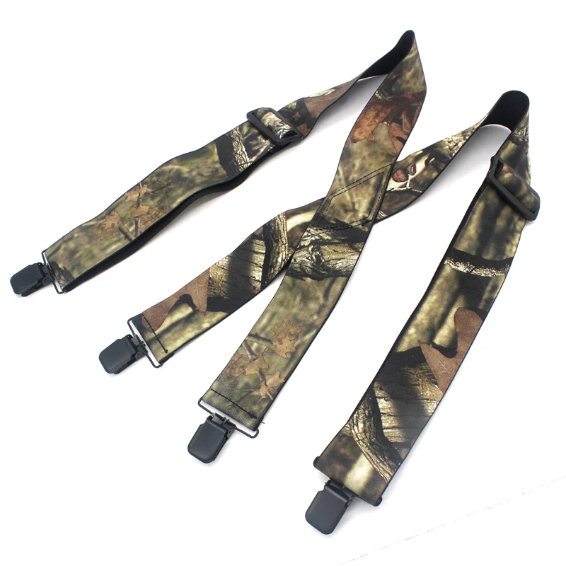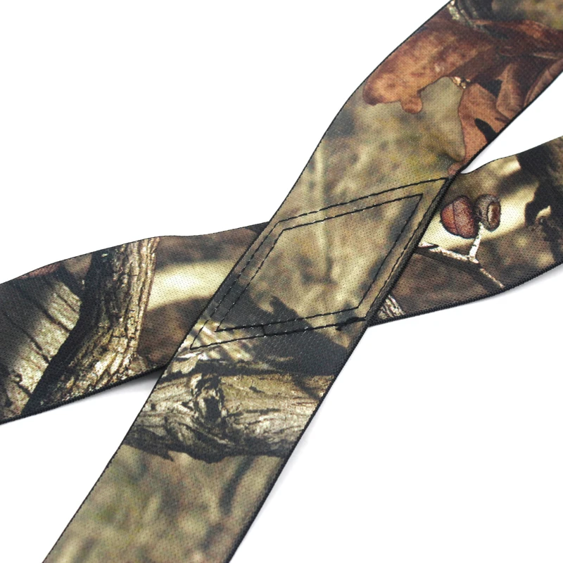 Tirantes tácticos elásticos con estampado de camuflaje para hombre, en forma de X, color negro, con clip, 120 cm de largo (MBD8464)