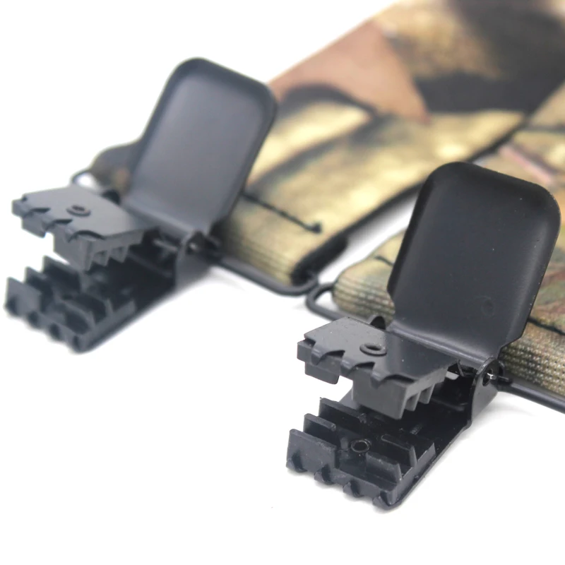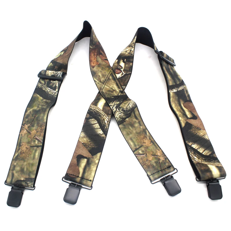 Tirantes elásticos con estampado de camuflaje para hombre, cinturón táctico en forma de X, 4 clips negros para pistola