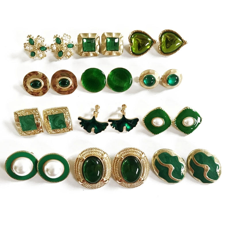 Pendientes de moda: elegantes y dulces, con clip, varios estilos verdes, para mujer, ideal como regalo de cumpleaños o fiesta.