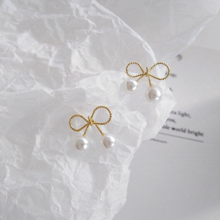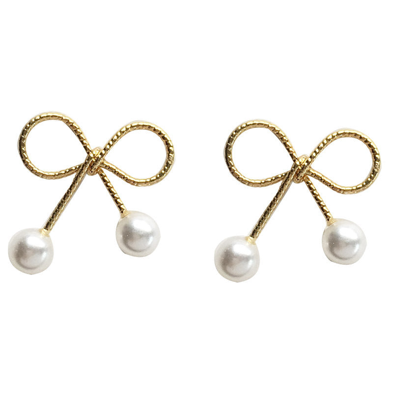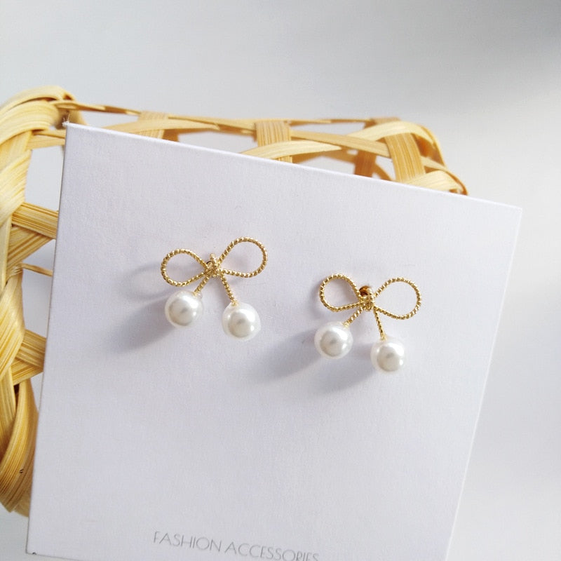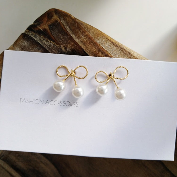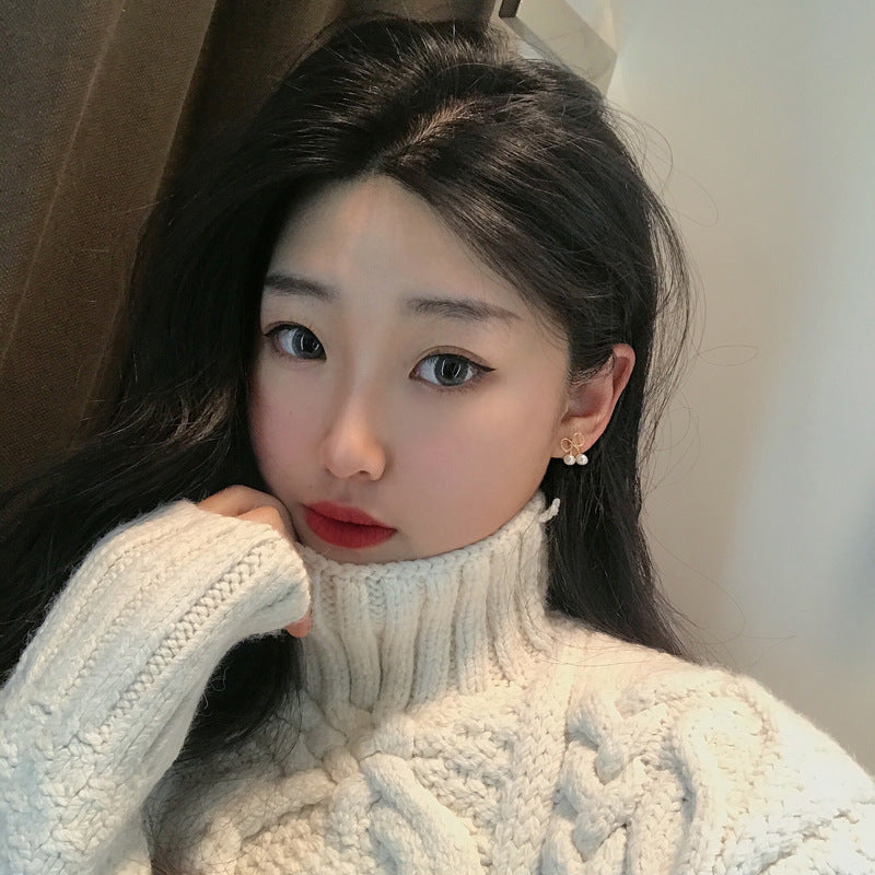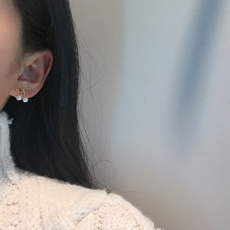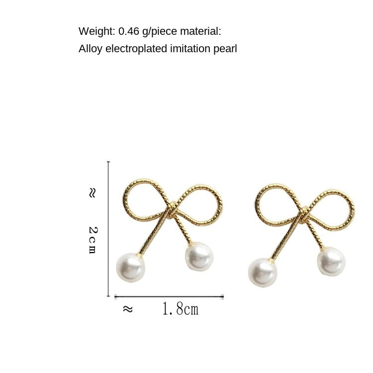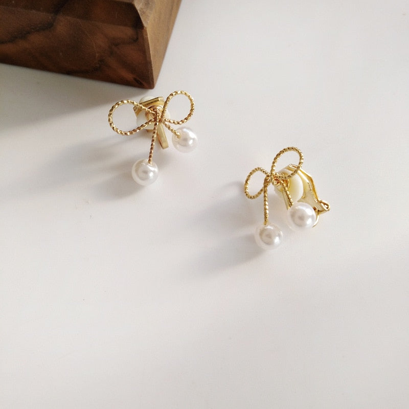 Pendientes de moda: pequeños y sencillos pendientes de clip con lazo de aleación, pendientes de clip para mujer, mini pendientes de clip con perlas de imitación, sin perforaciones.
