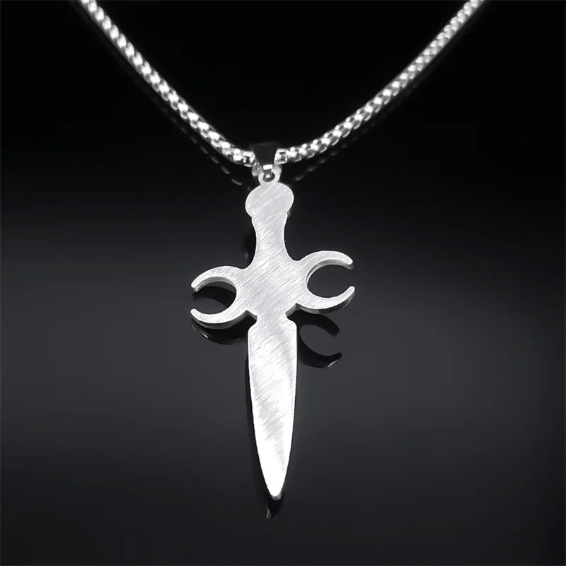 Estilo: Collar con pentagrama de la diosa de la luna triple y espada