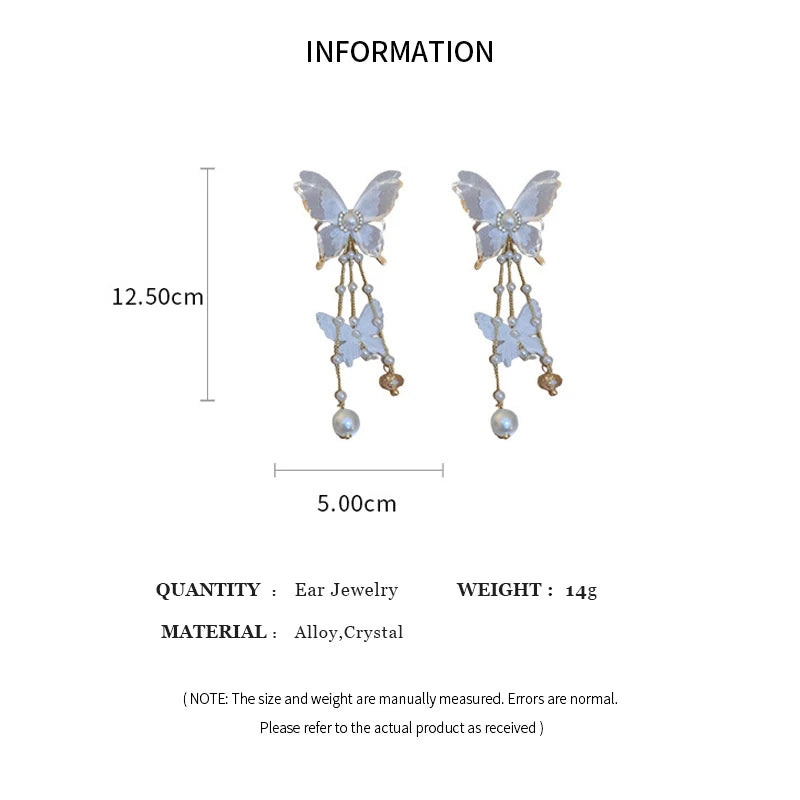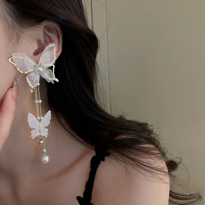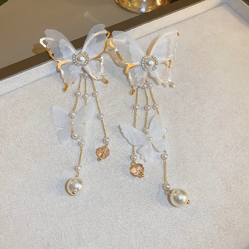 Pendientes largos con borlas y mariposas blancas con temperamento para mujer, pendientes de perlas de imitación a la moda, joyería