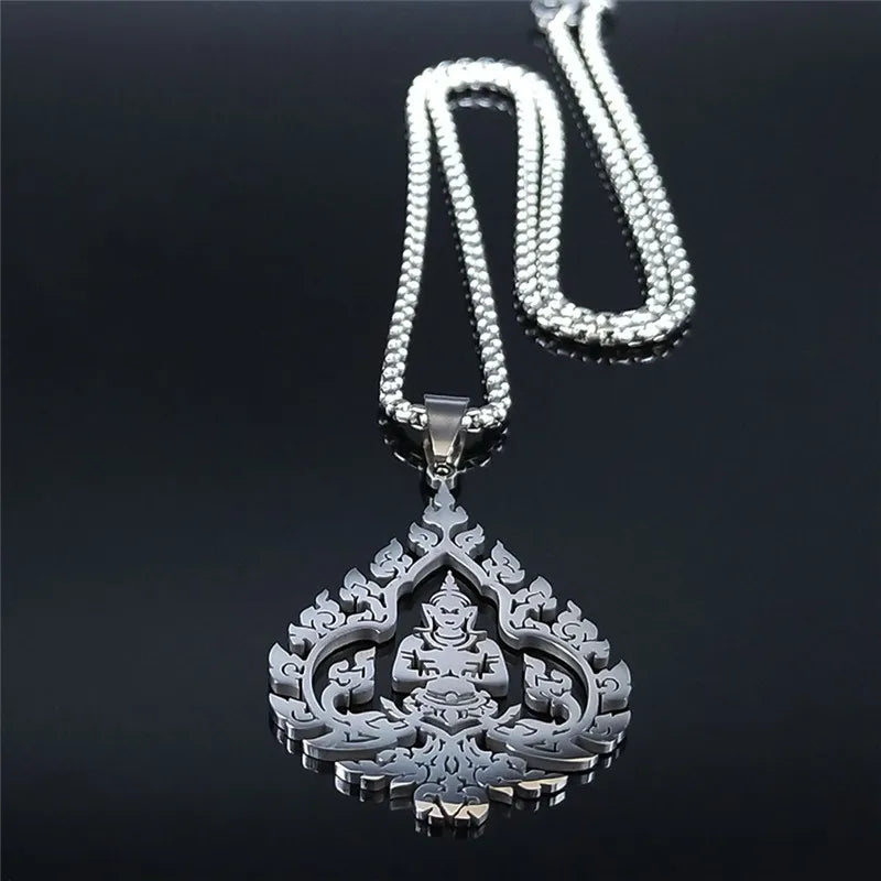 Estilo: Collar de acero inoxidable con diseño de bodhisattva tailandés