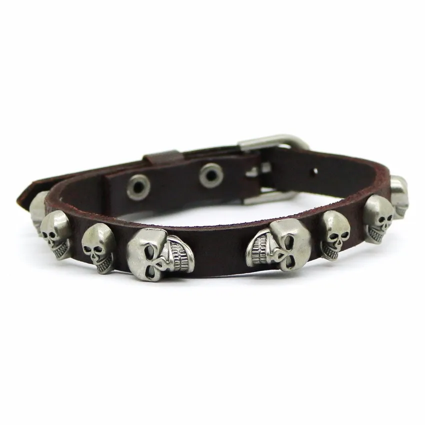 Pulsera de cuero: los nuevos accesorios para hombres, pulsera de calavera, pulsera de calavera retro informal de moda para hombres.