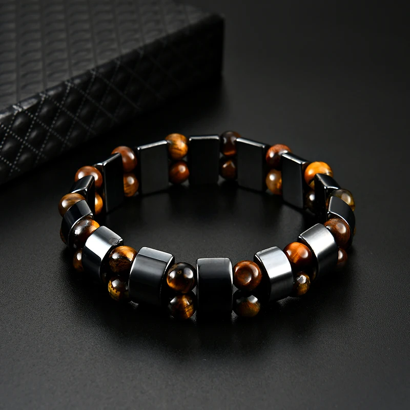 Pulsera de cuentas de piedra de ojo de tigre y hematita, joyería DIY hecha a mano, pulsera con dijes para hombres y mujeres.
