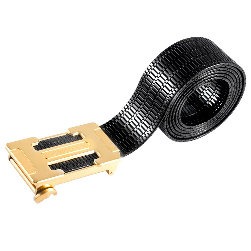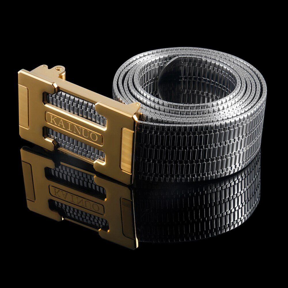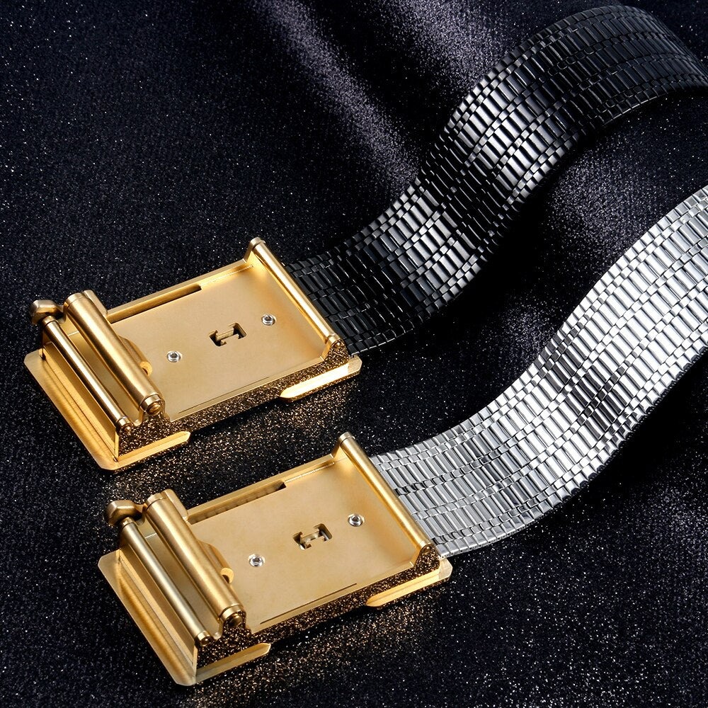 Cinturón de acero de titanio para hombre, 4,2 cm de ancho, duradero, de acero inoxidable 316L, dorado, con cadena negra y plateada.