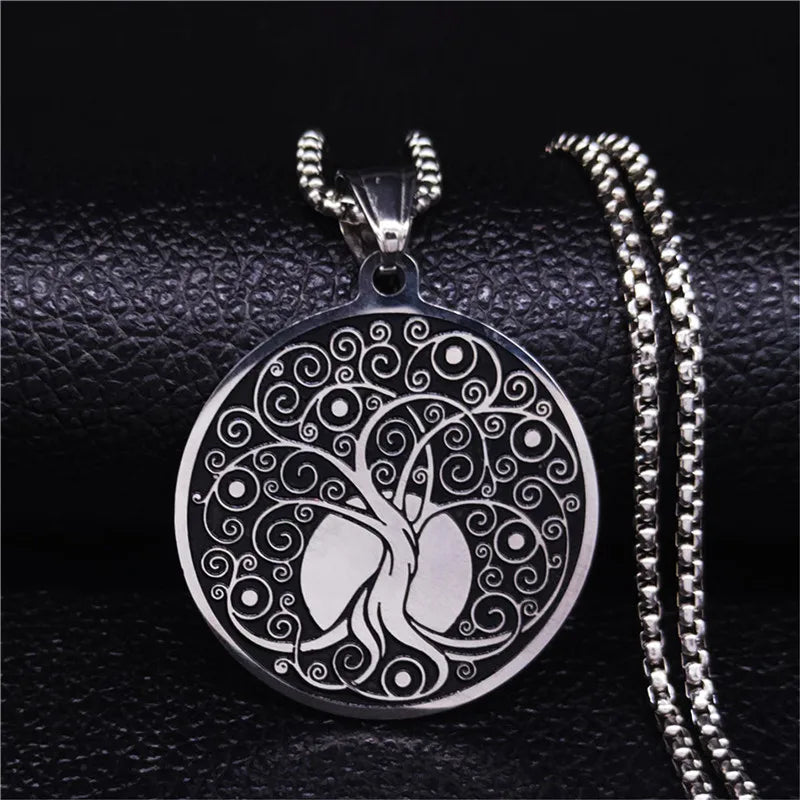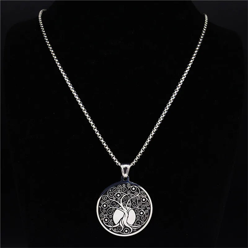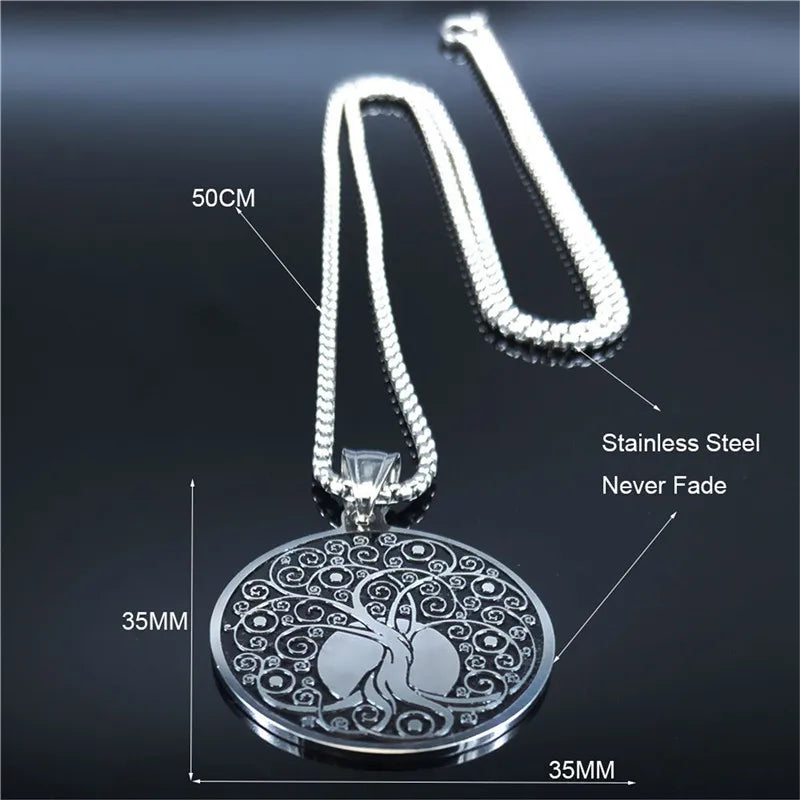 Collar llamativo de acero inoxidable con forma de árbol de la vida para mujer, color plata, collares y colgantes, joyería