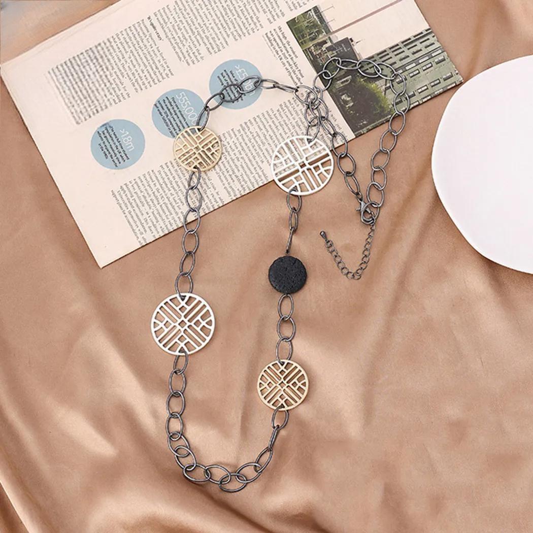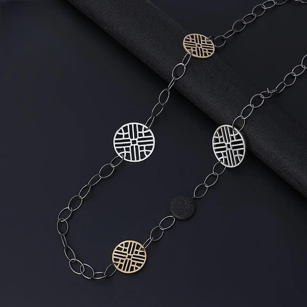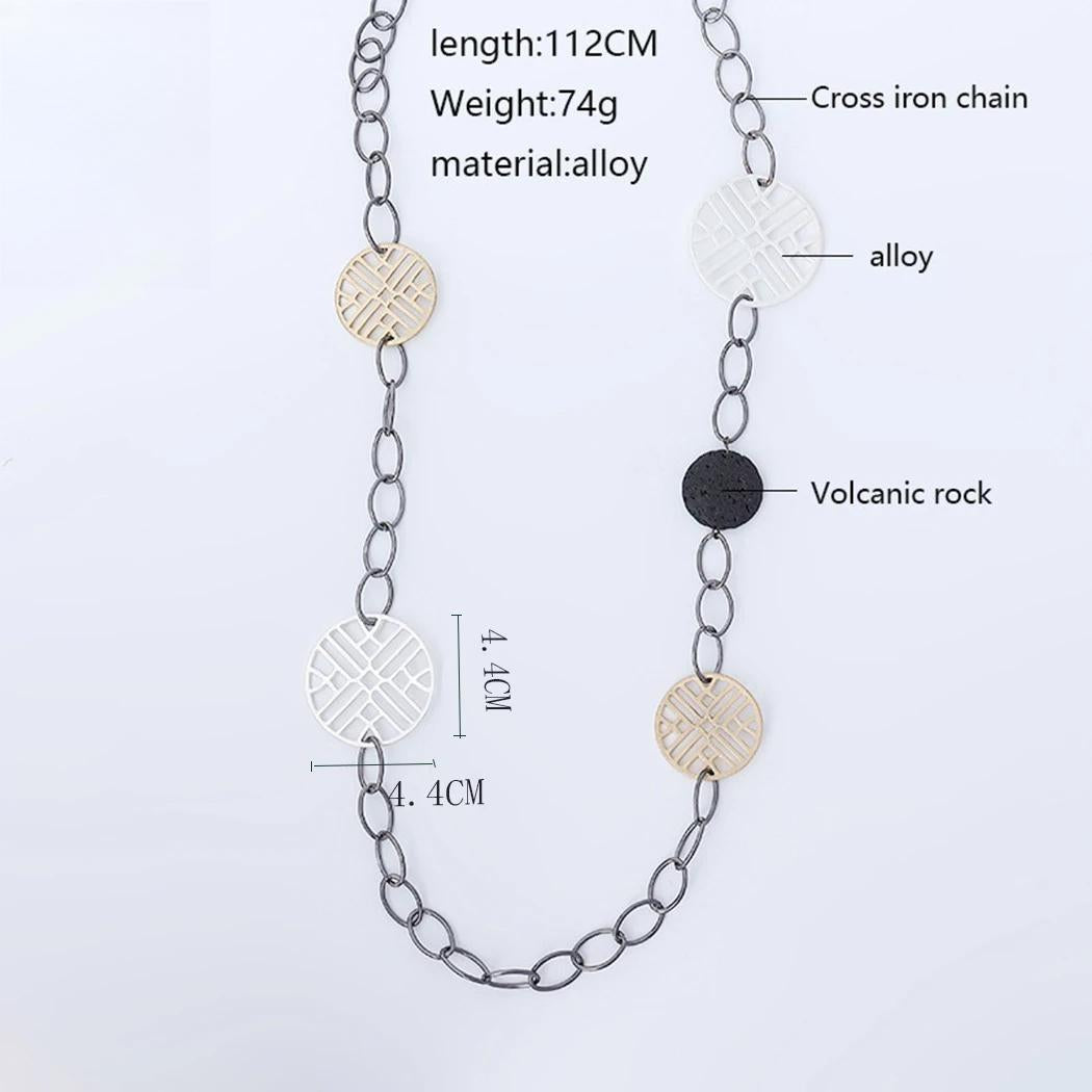 Collar con cadena larga de hierro cruzado de tendencia para mujer con colgantes geométricos de roca volcánica, joyería gótica coreana.