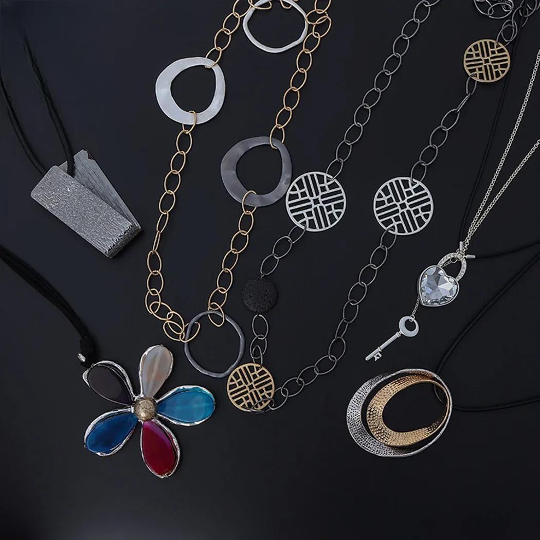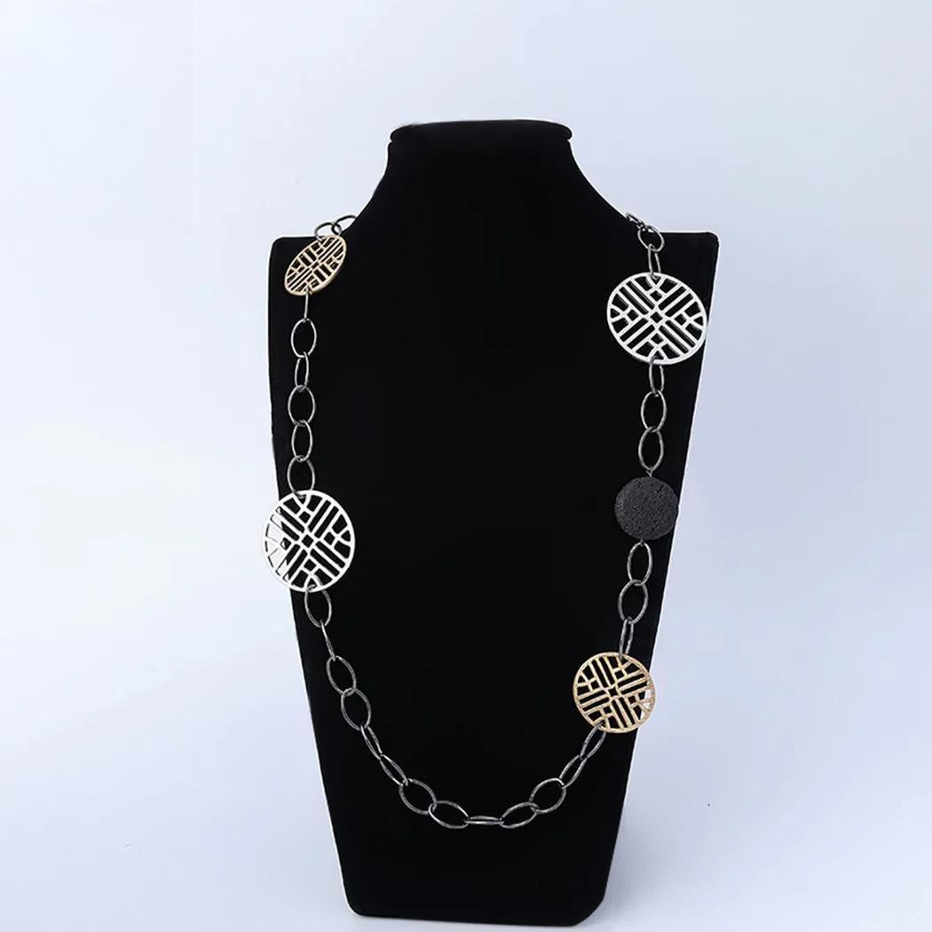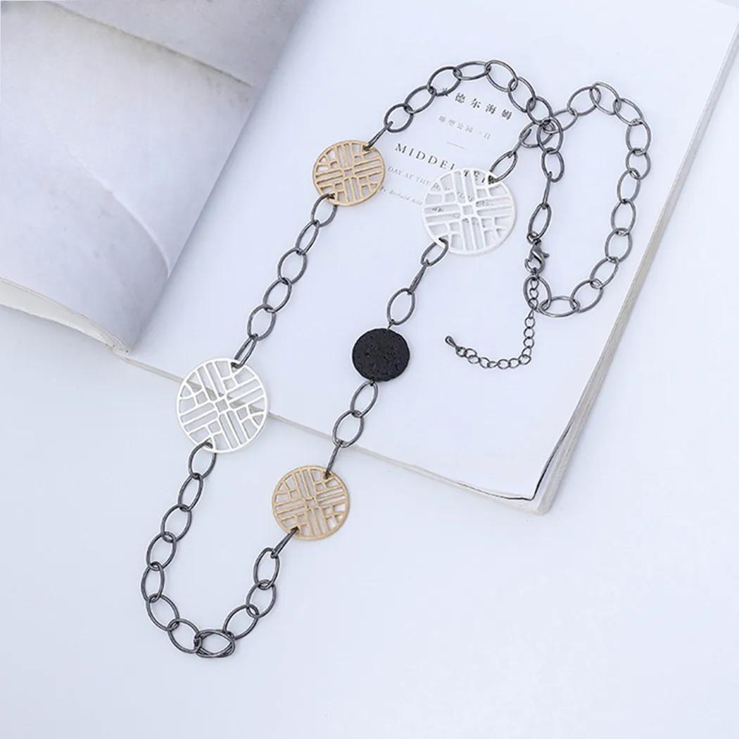 Collar con cadena larga de hierro cruzado de tendencia para mujer con colgantes geométricos de roca volcánica, joyería gótica coreana.
