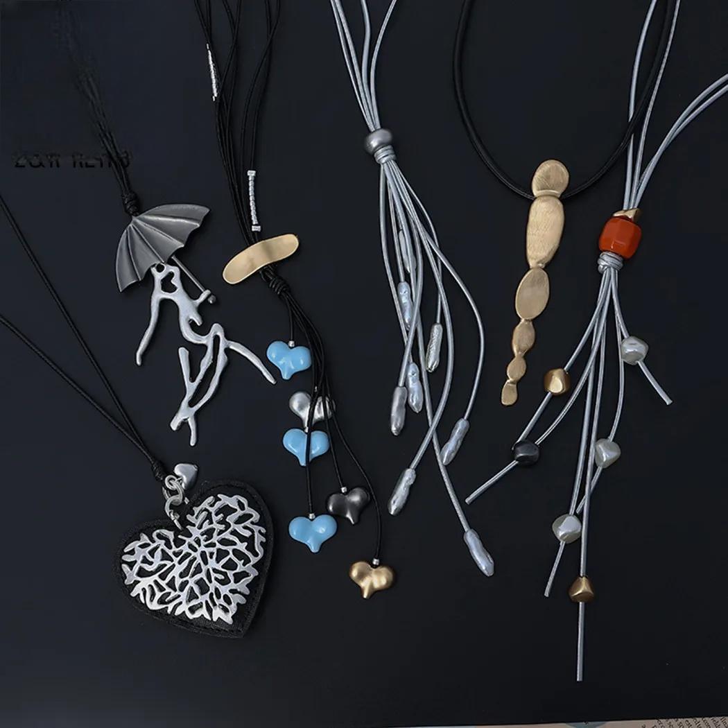 Productos geométricos largos de tendencia, joyería para mujer, collares y colgantes de cadena para el cuello, decoración de corazón, accesorios góticos