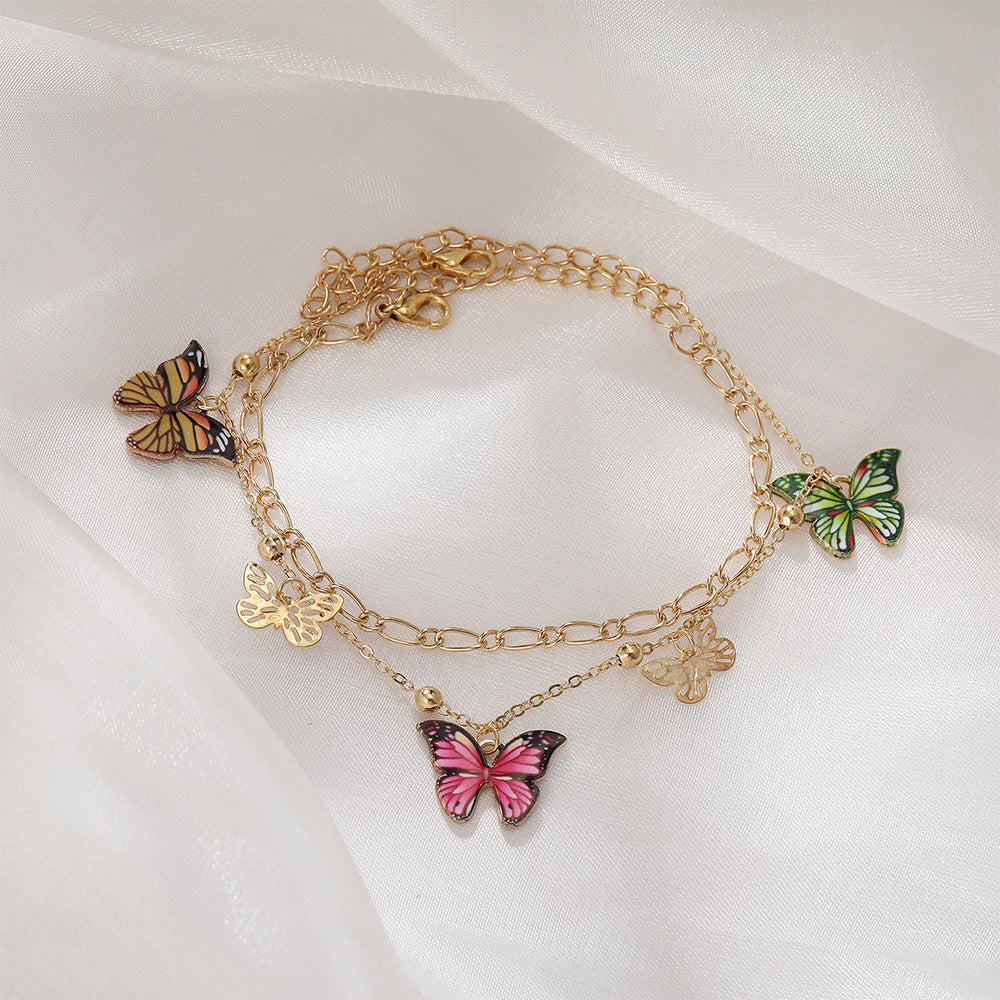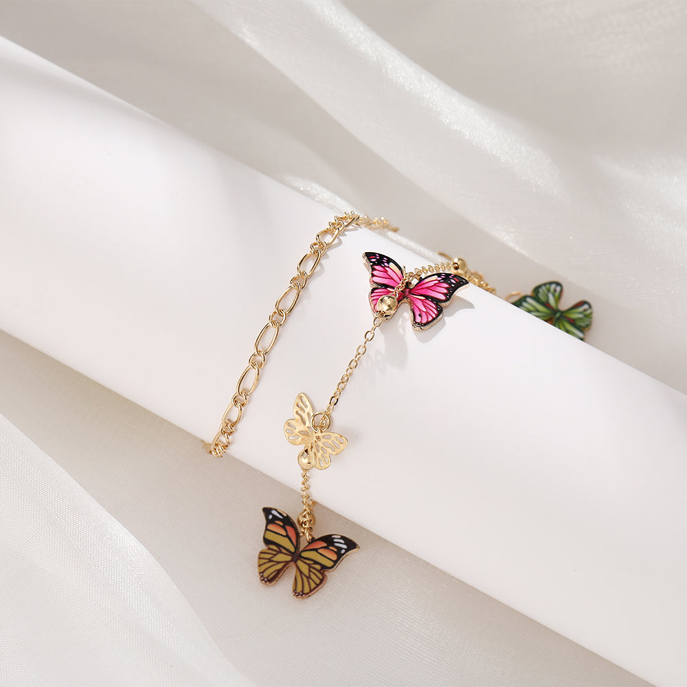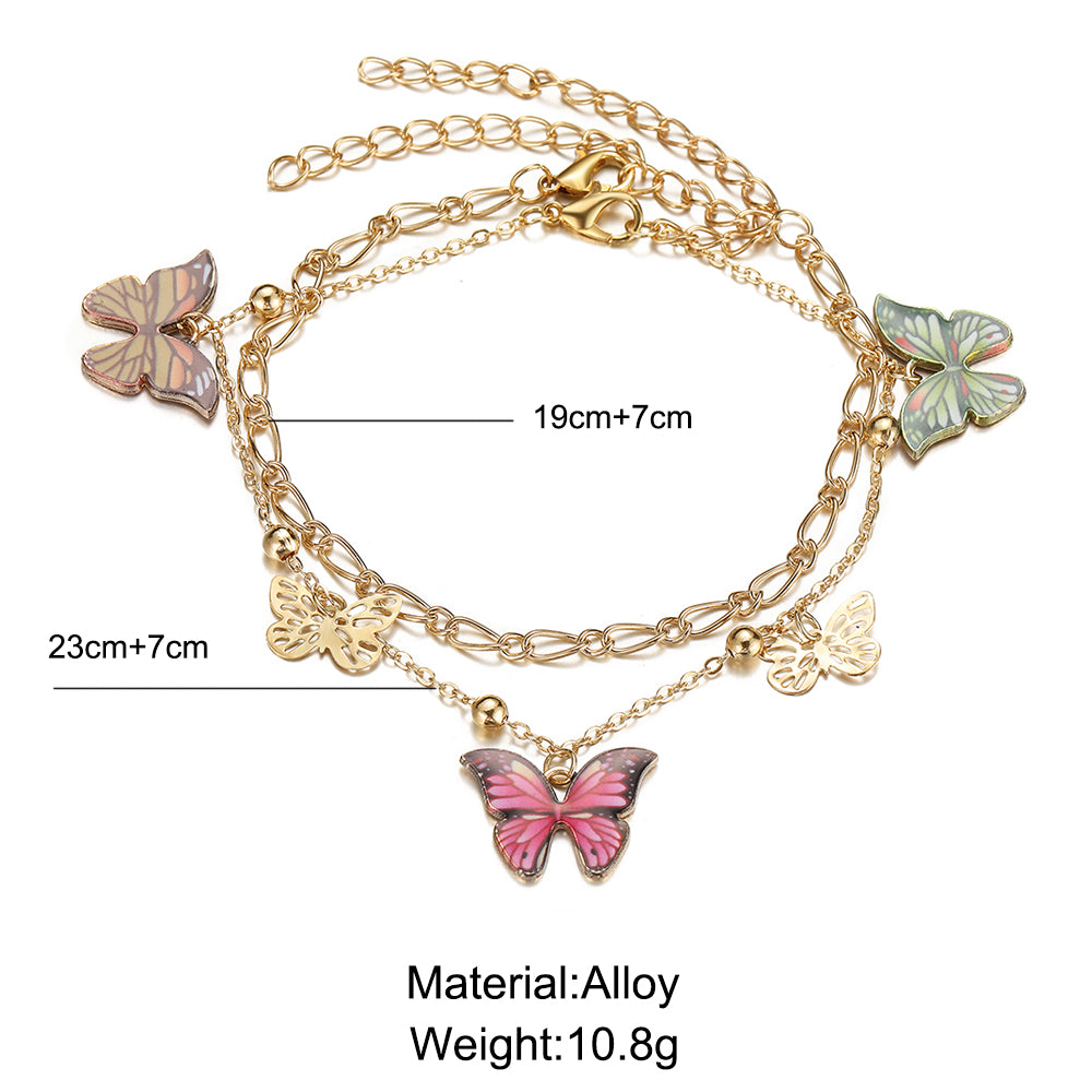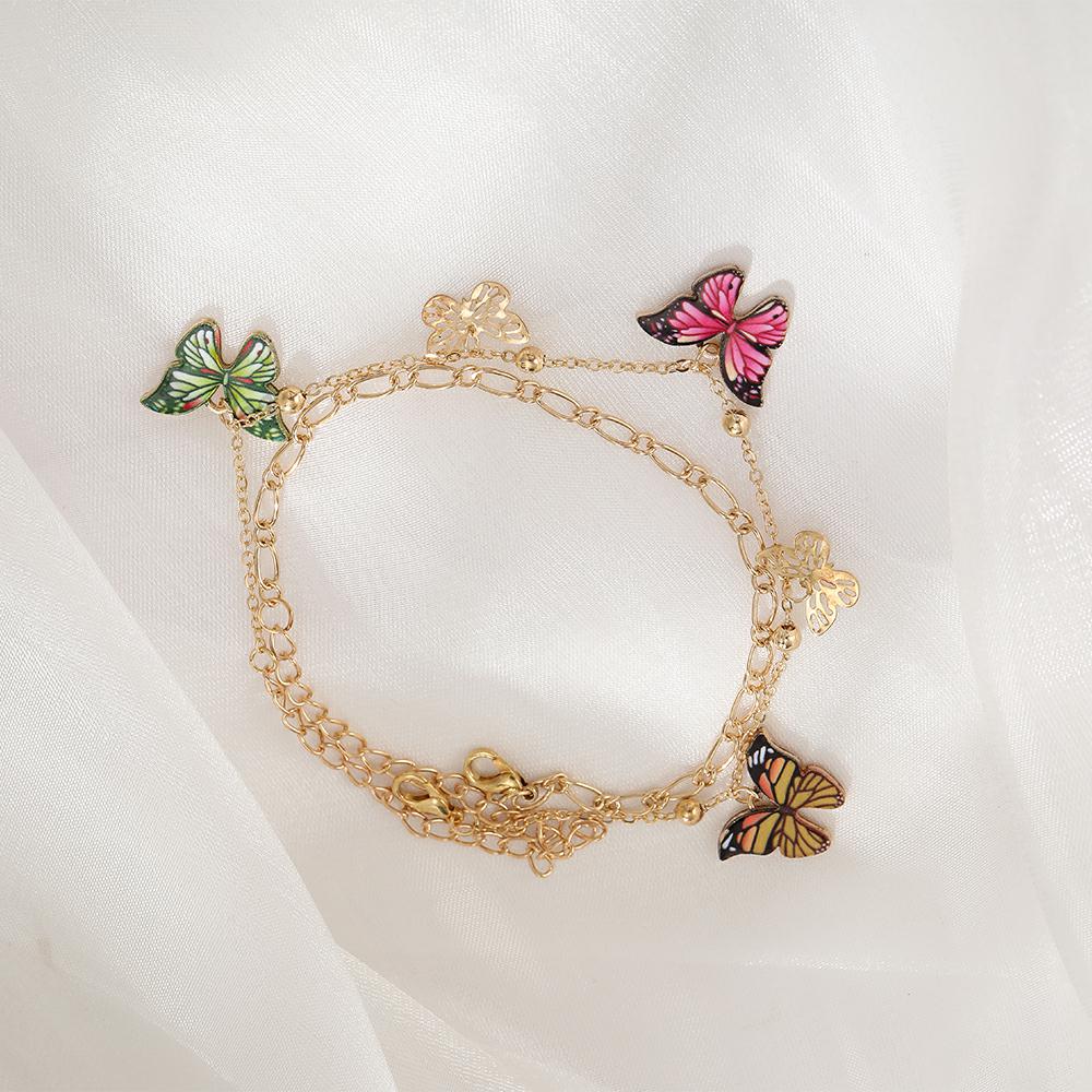 Tobilleras de mariposa con cuentas de colores para mujer, modernas tobilleras bohemias de verano para playa, pulsera de tobillo con insectos, joyería con cadena para el pie