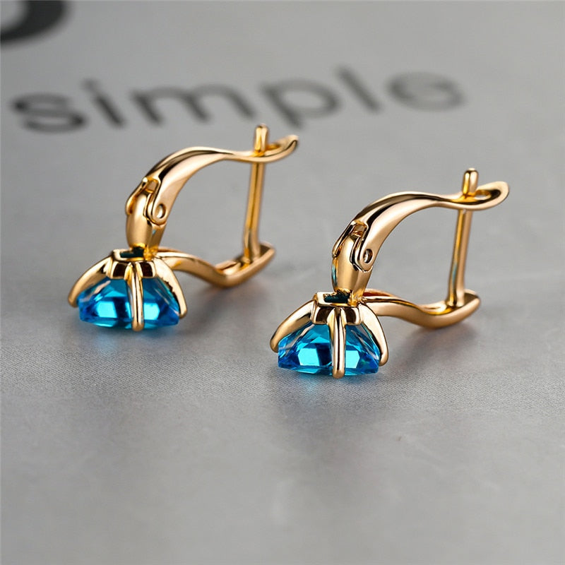 Pendientes de clip con circonita azul aguamarina para mujer, modernos y de color oro rosa.