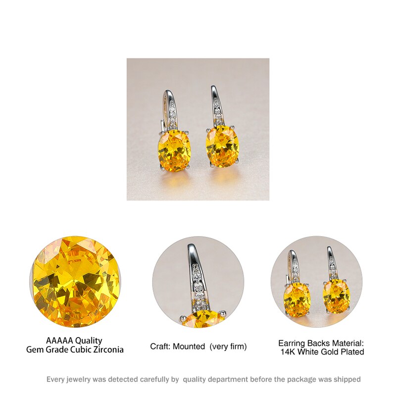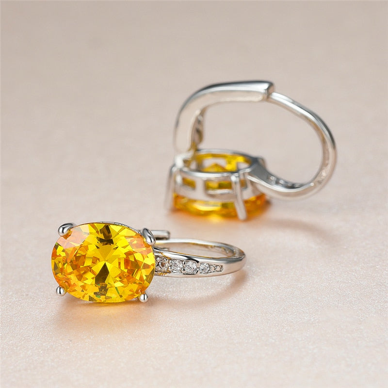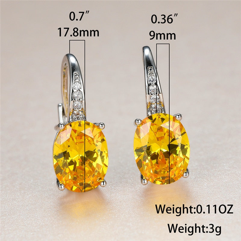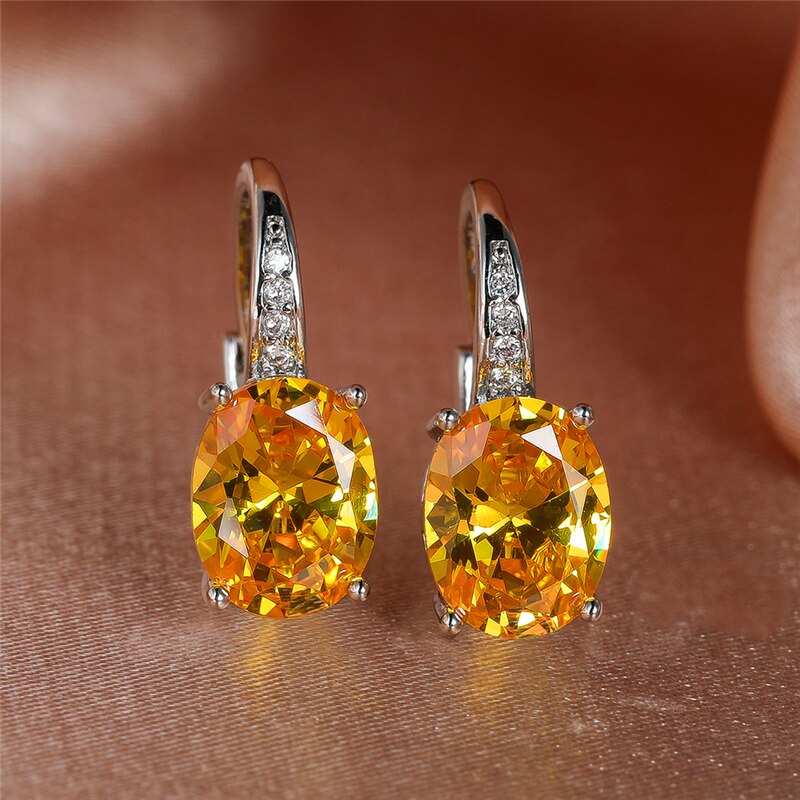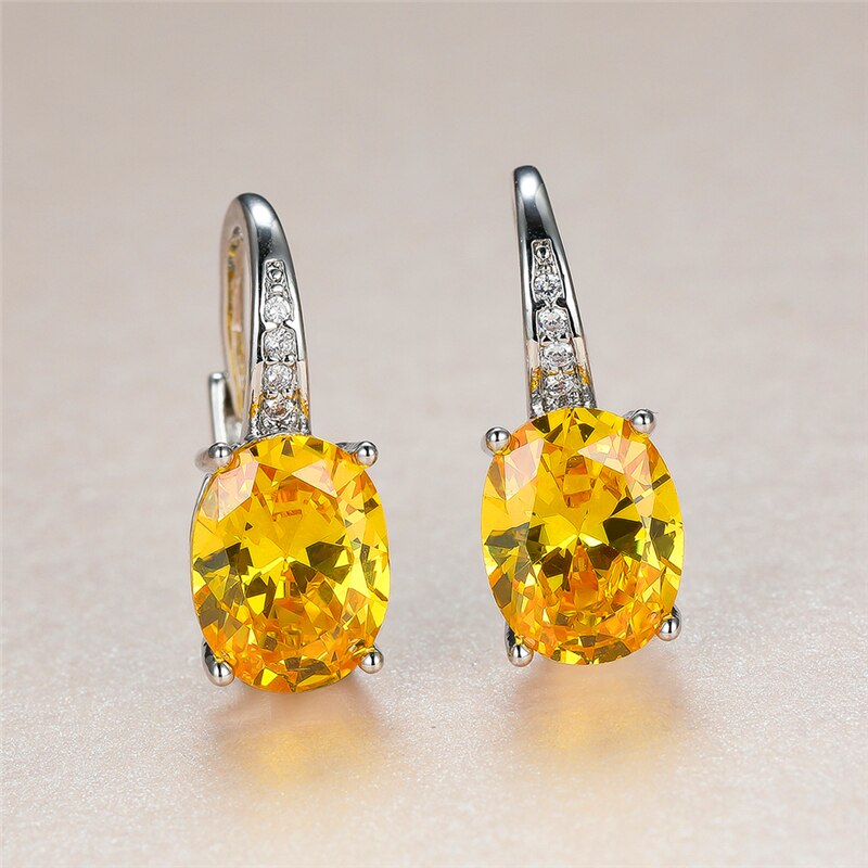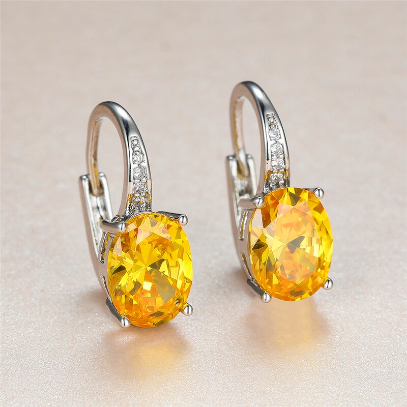 Pendientes de moda: pendientes de cristal amarillo para mujer, clásicos, de clip plateado, con circonitas ovaladas para novia.