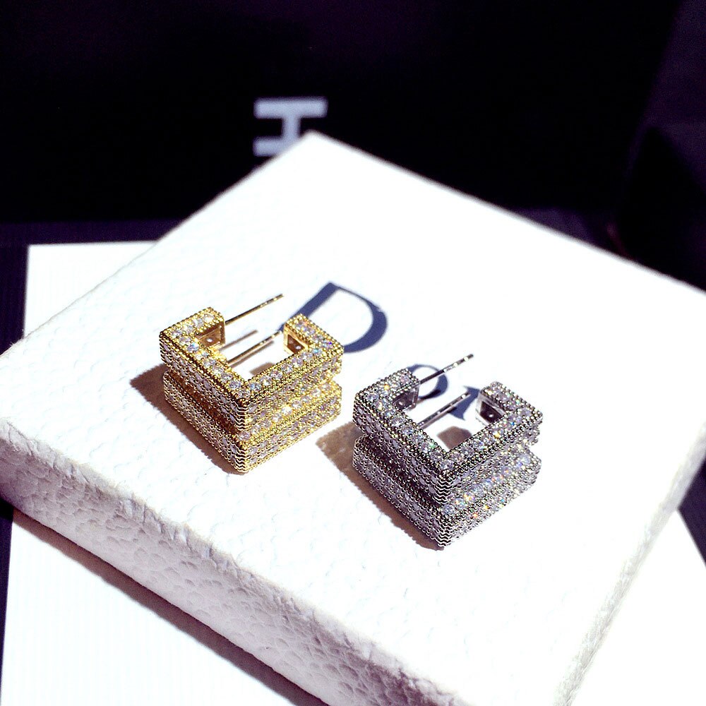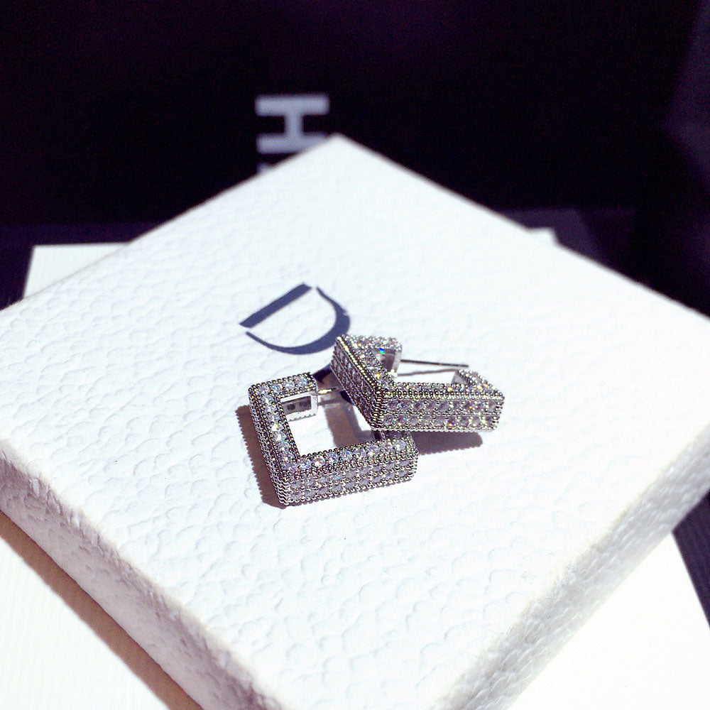 Pendientes de diamantes de imitación con brillo superbrillante y geometría de moda