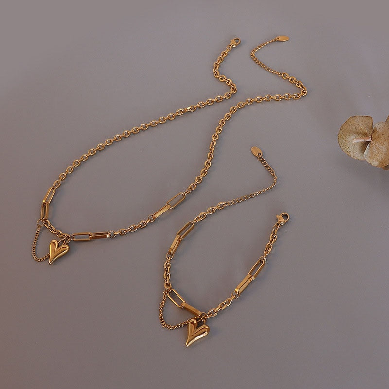 Pulsera de acero inoxidable con textura metálica y corazón de doble capa.
