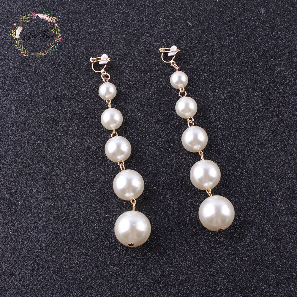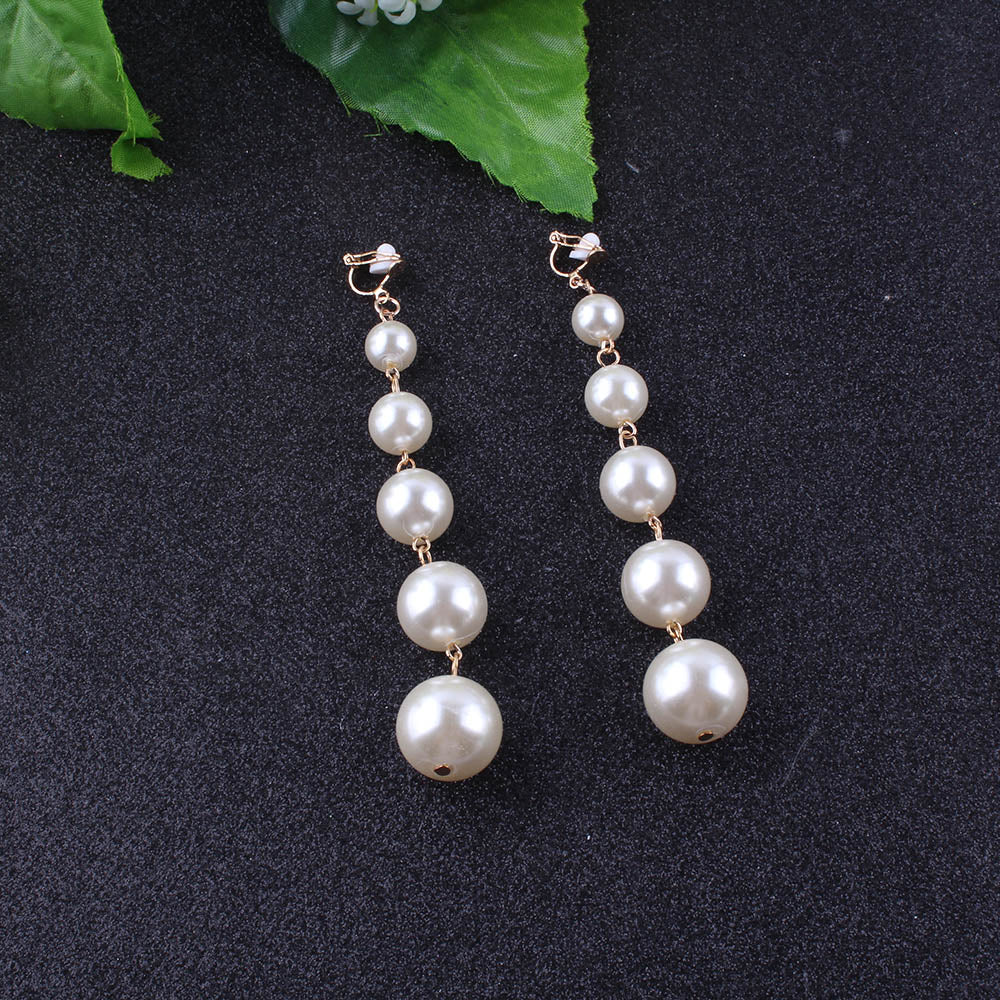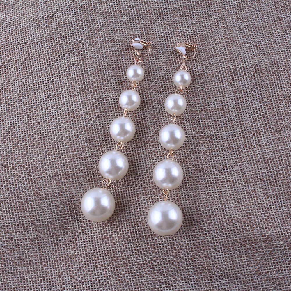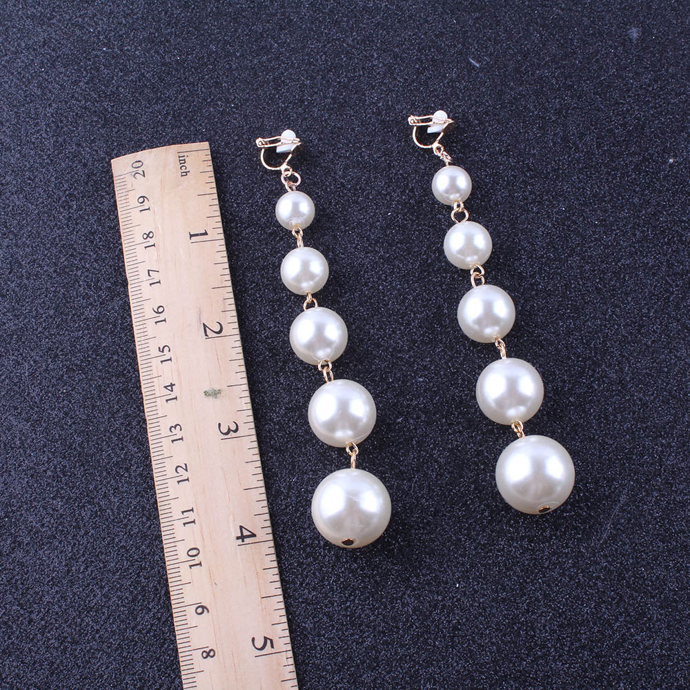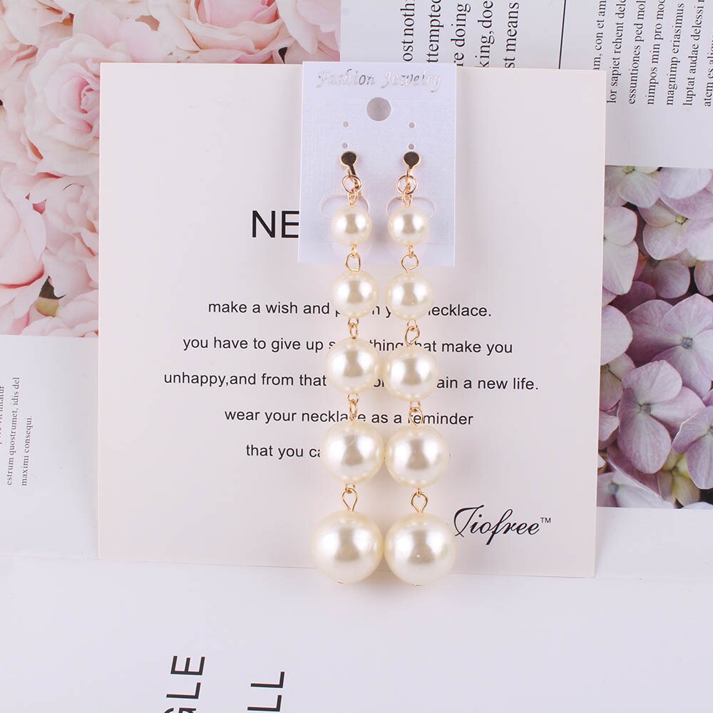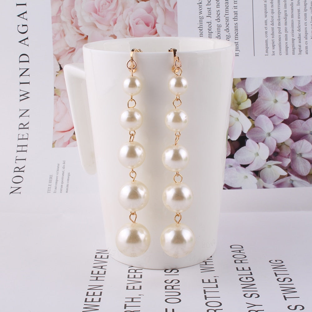 Pendientes de moda: nuevo diseño moderno, largos, grandes, de imitación de perla, con clip, pendientes llamativos de cadena de perlas para regalo de boda o fiesta.