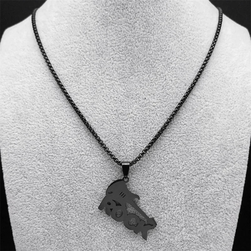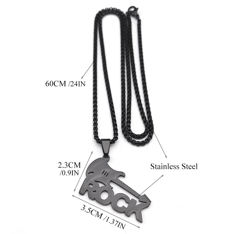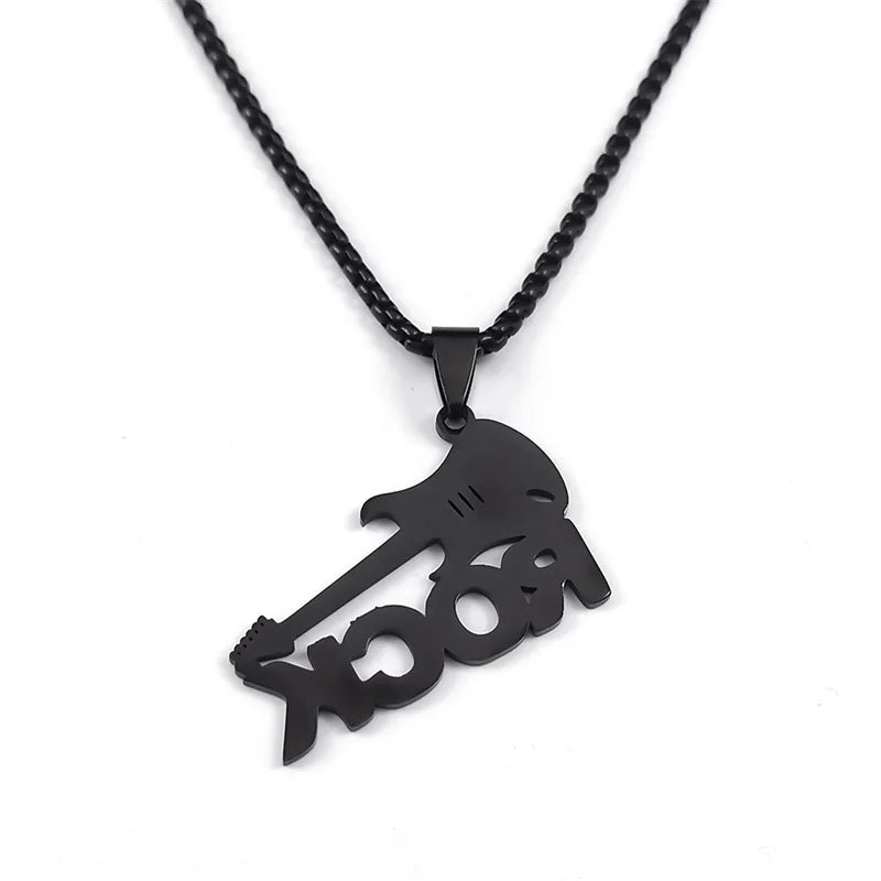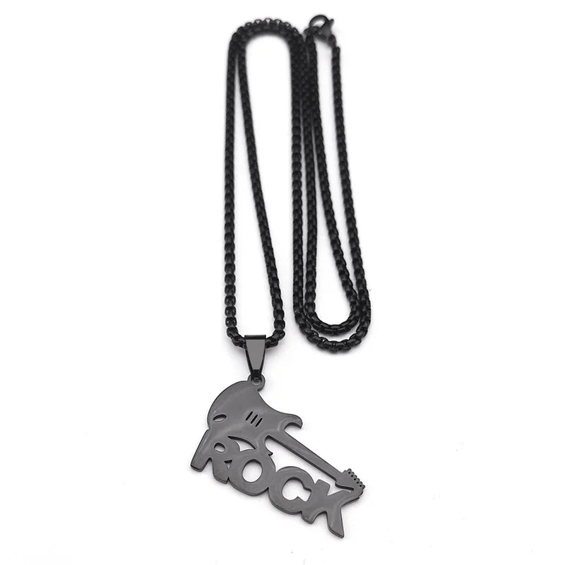 Collar con colgante de guitarra de rock moderno para mujer/hombre, cadena de música punk de acero inoxidable color negro