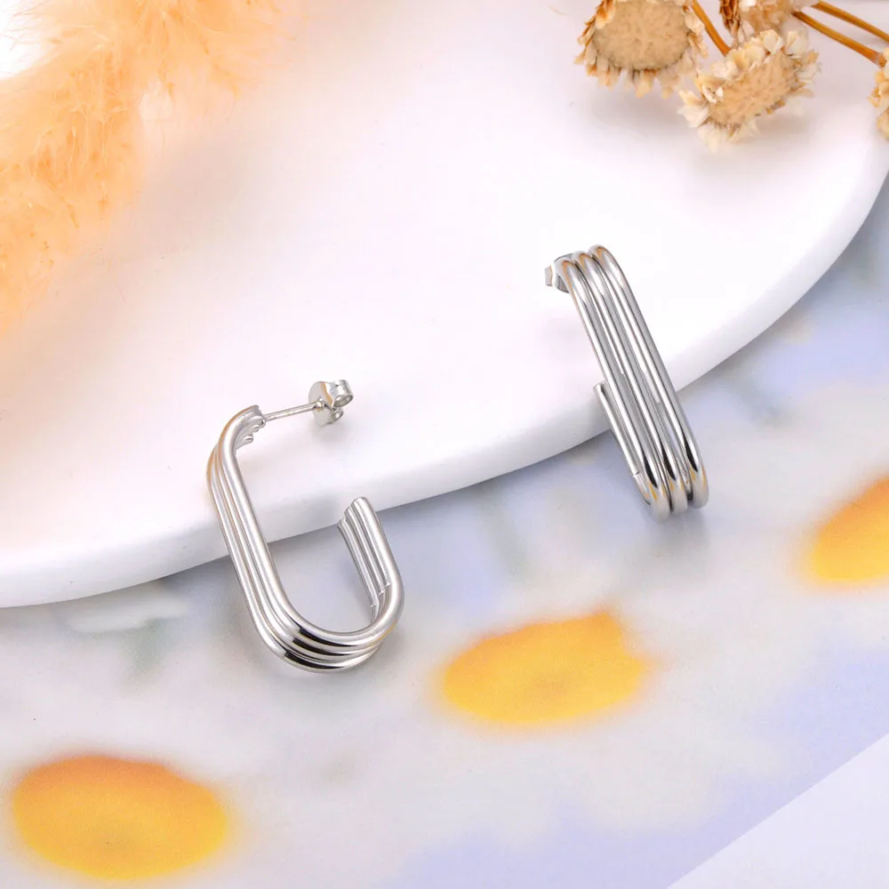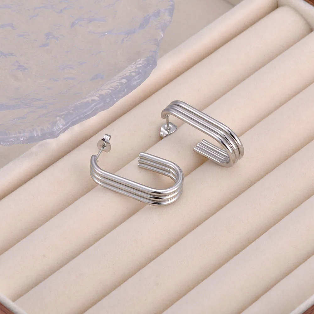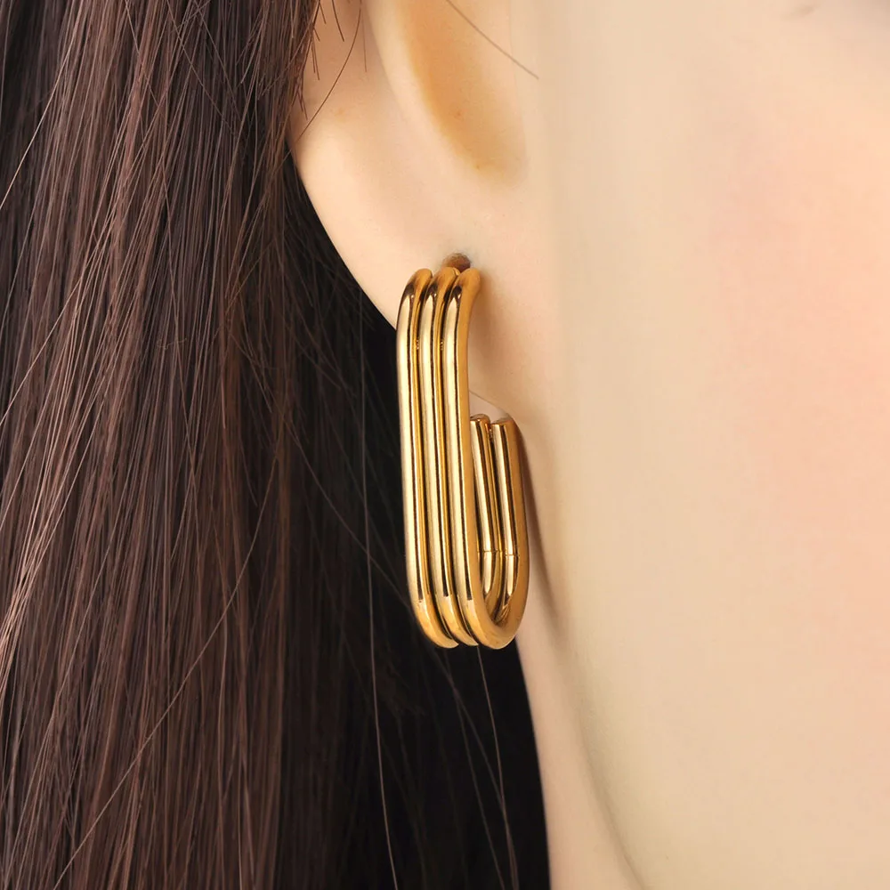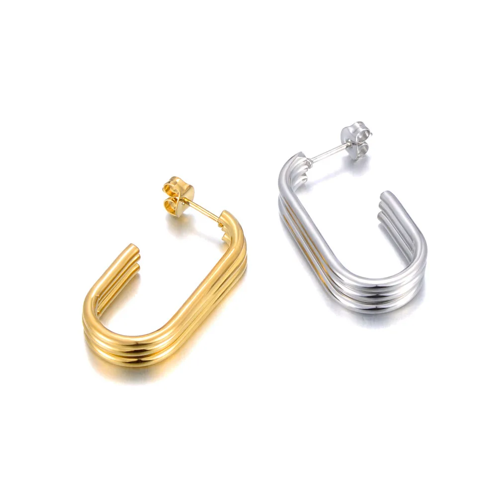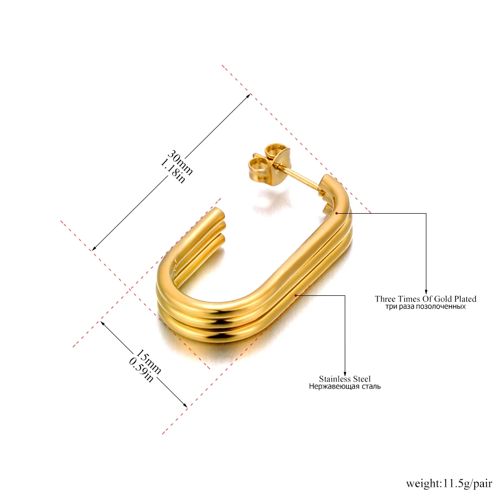 Pendientes de aro de acero inoxidable de moda para mujer, color dorado, textura impermeable, joyería geométrica.