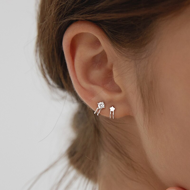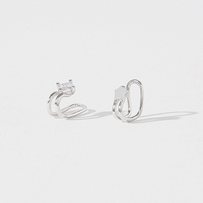Pendientes de moda: nuevos pendientes de clip de estrella de moda con cristales de circón para mujer, sin perforaciones, sencillos, estilo coreano, punk, joyería para estudiantes.