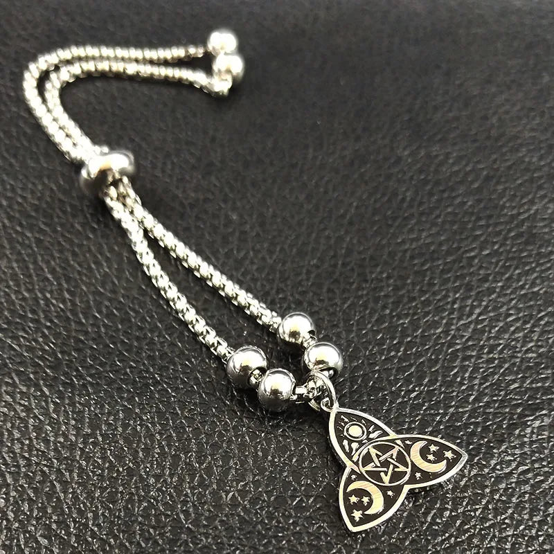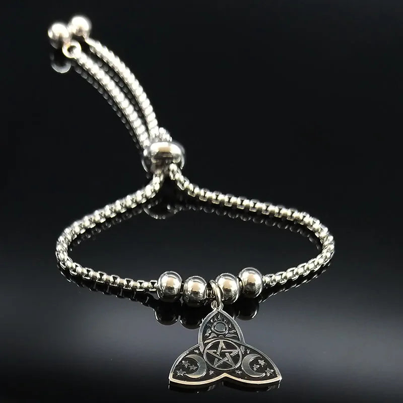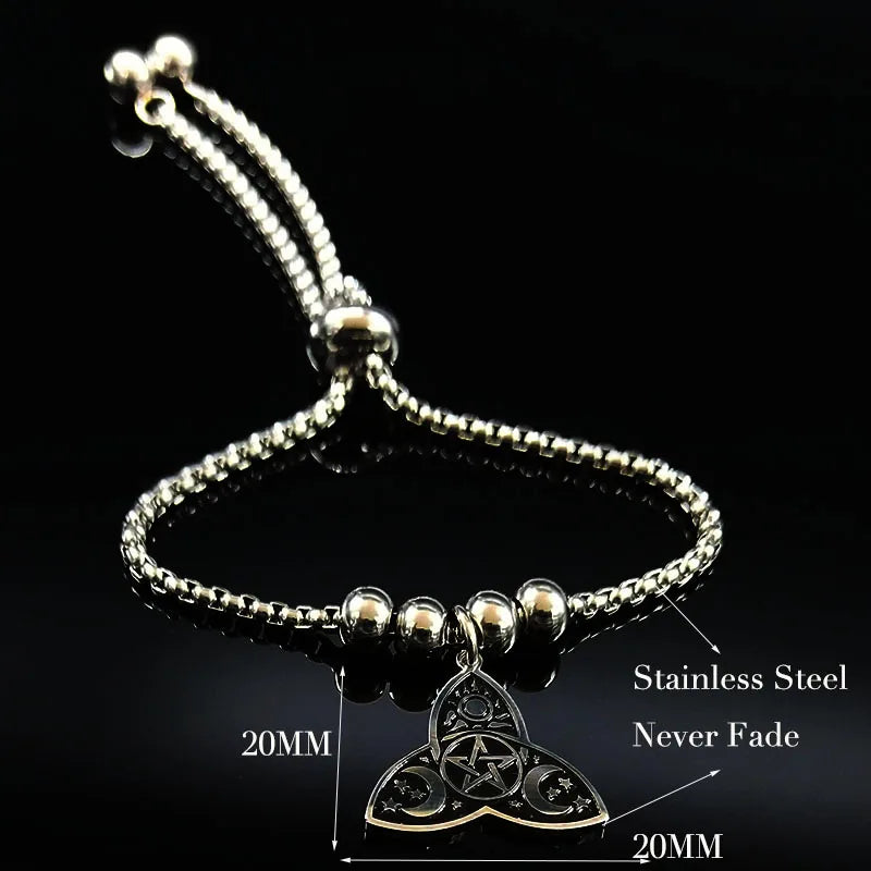 Pulsera de acero inoxidable con triple luna y diosa para mujer, pulseras de brujería con cuentas