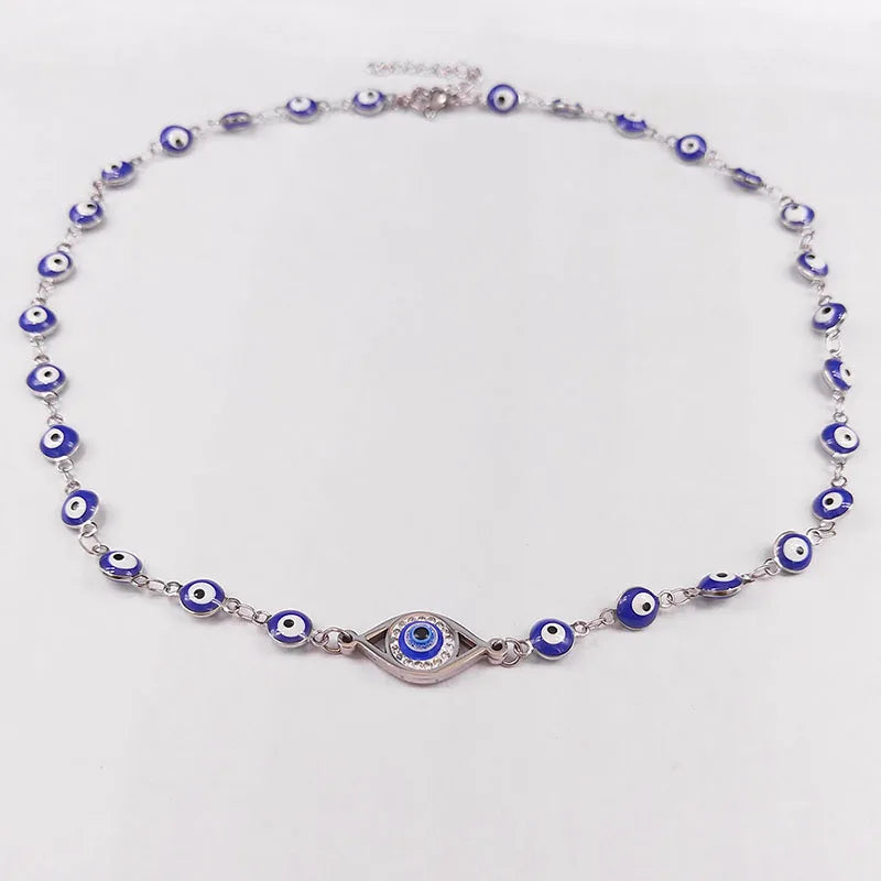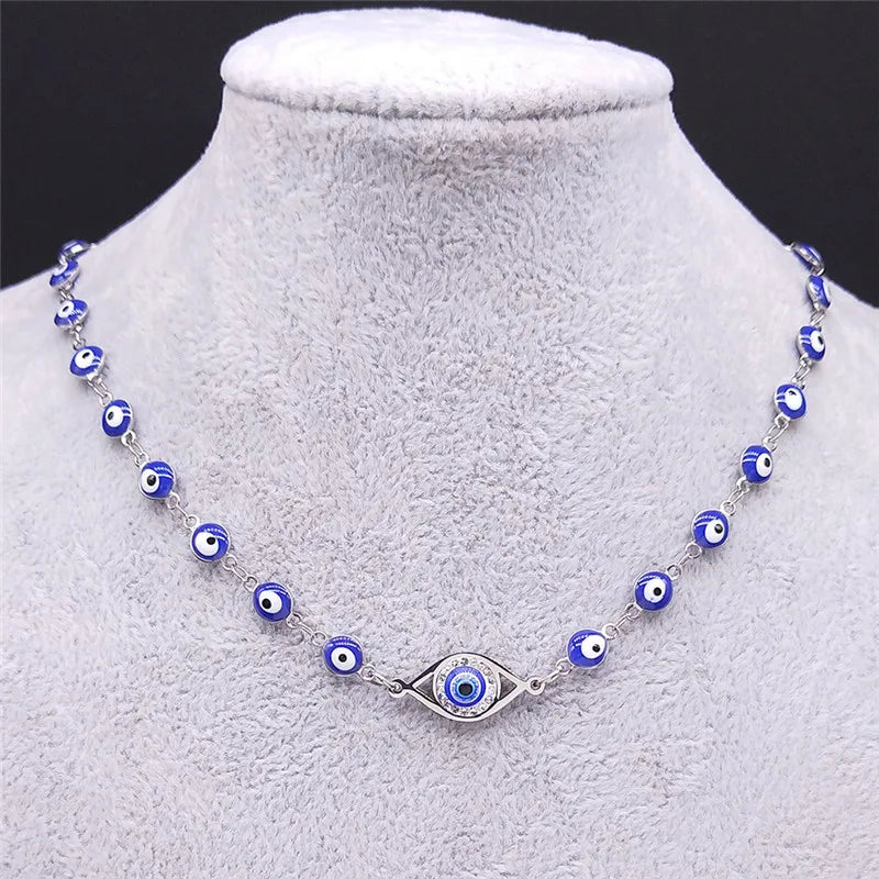 Gargantilla musulmana de acero inoxidable con cristales de ojo de pavo para mujer