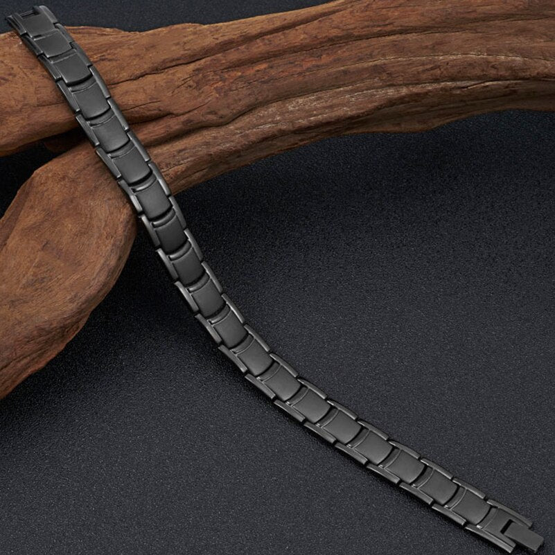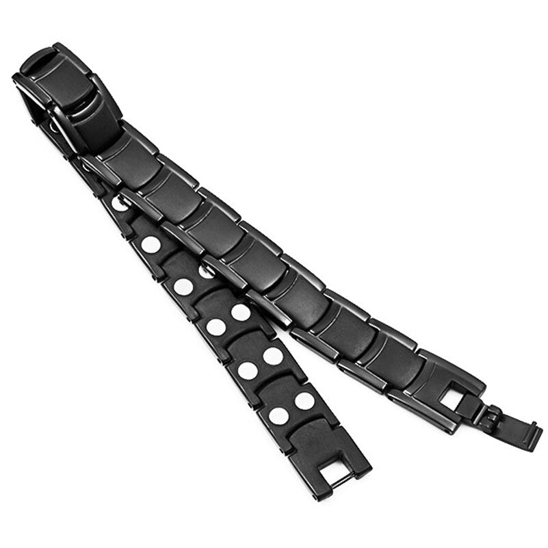 Pulsera magnética de terapia ultrarresistente para hombre, de acero inoxidable negro, para aliviar el dolor de artritis.