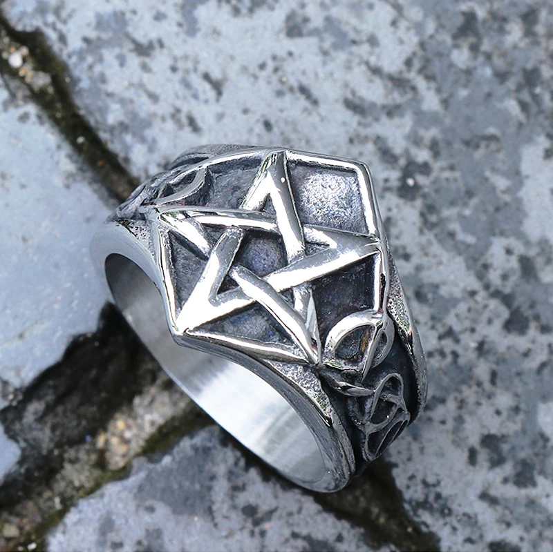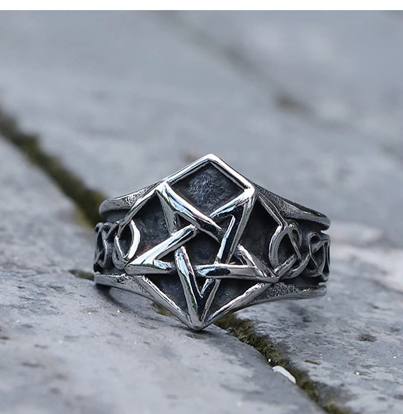 Nombre: Anillo de pentagrama con nudo celta único, acero inoxidable 316L, anillo de pentagrama pagano para hombres y mujeres, joyería de moda para motociclistas, envío directo.