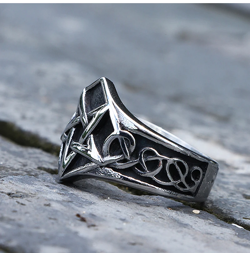 Joyería vikinga: anillo de pentagrama con nudo celta único, acero inoxidable 316L, anillo pagano con pentagrama, joyería de moda para hombres y mujeres.