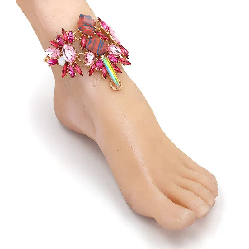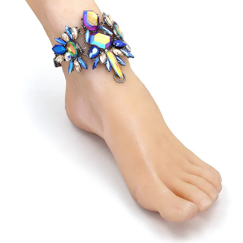 Tobilleras - Sandalias de tobillo de cristal sexys de lujo para vacaciones en la playa en Australia para mujer, pulseras de cristal azul bohemias, joyería de moda JURAN