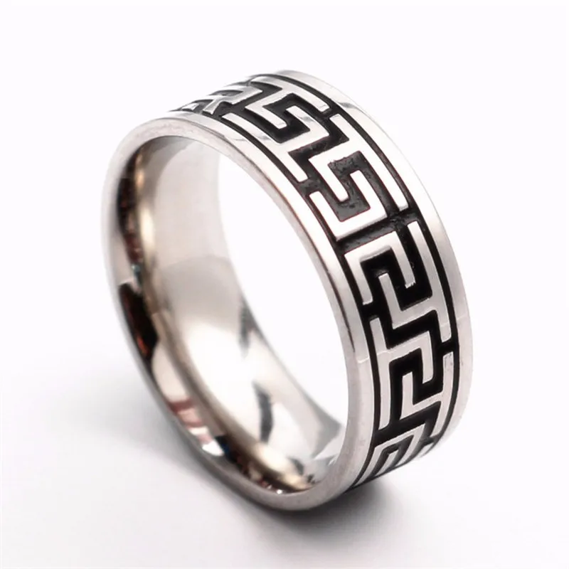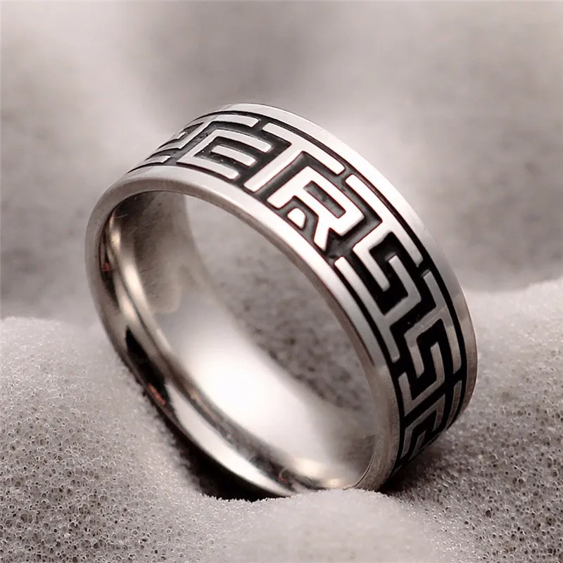 Anillos - Anillo vintage de acero inoxidable 316L para hombre y mujer. Anillo de mantra budista sánscrito "Om Mani Padme Hum" con poder de la suerte que nunca se desvanece.