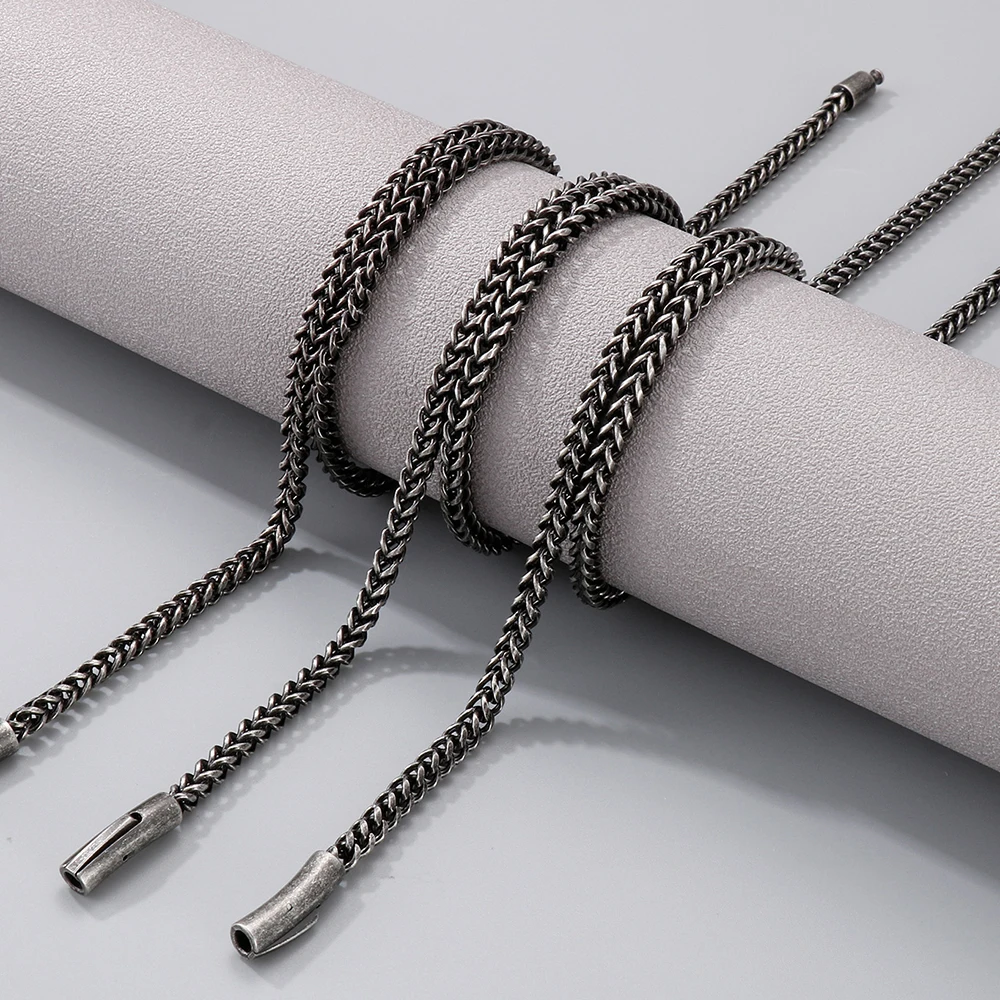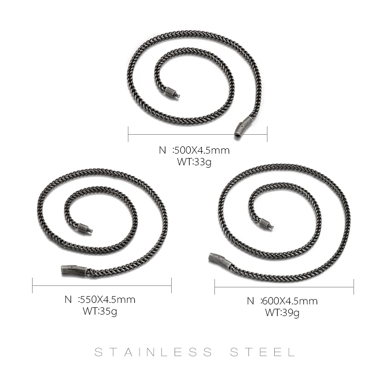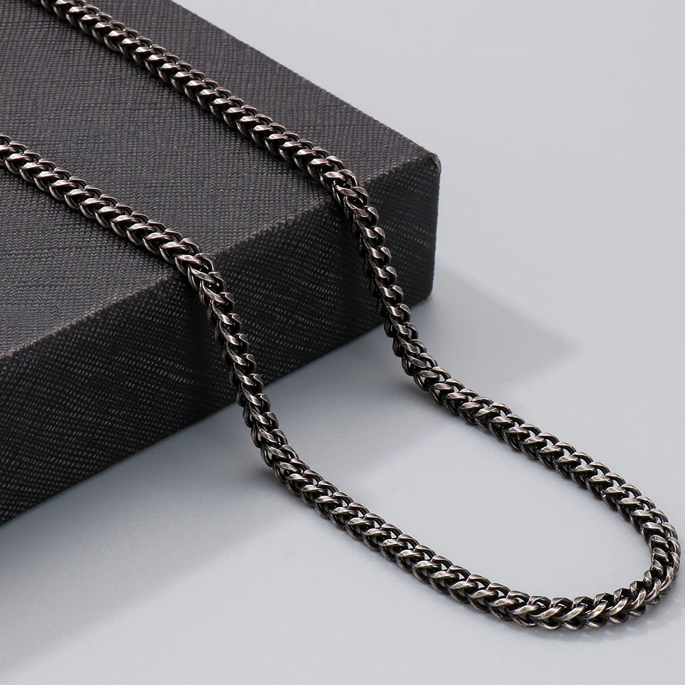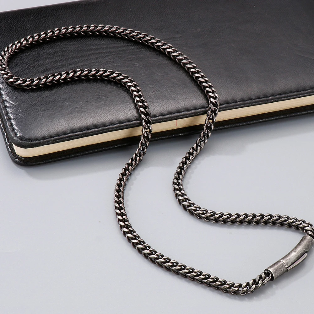 Collar de cadena de eslabones vintage de 4,5 mm para hombre, de acero inoxidable, gargantilla de 50/55/60 cm de largo, joyería vikinga.