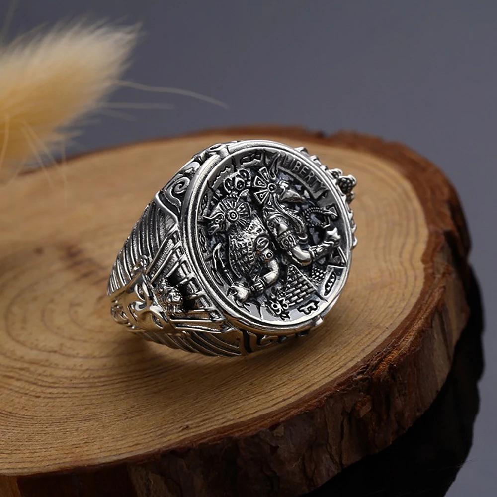 Joyería vikinga: anillo vintage de Anubis con diseño de mitología egipcia para hombre, tótem egipcio antiguo, joyería de acero inoxidable en color dorado y plateado, regalo de motociclista.