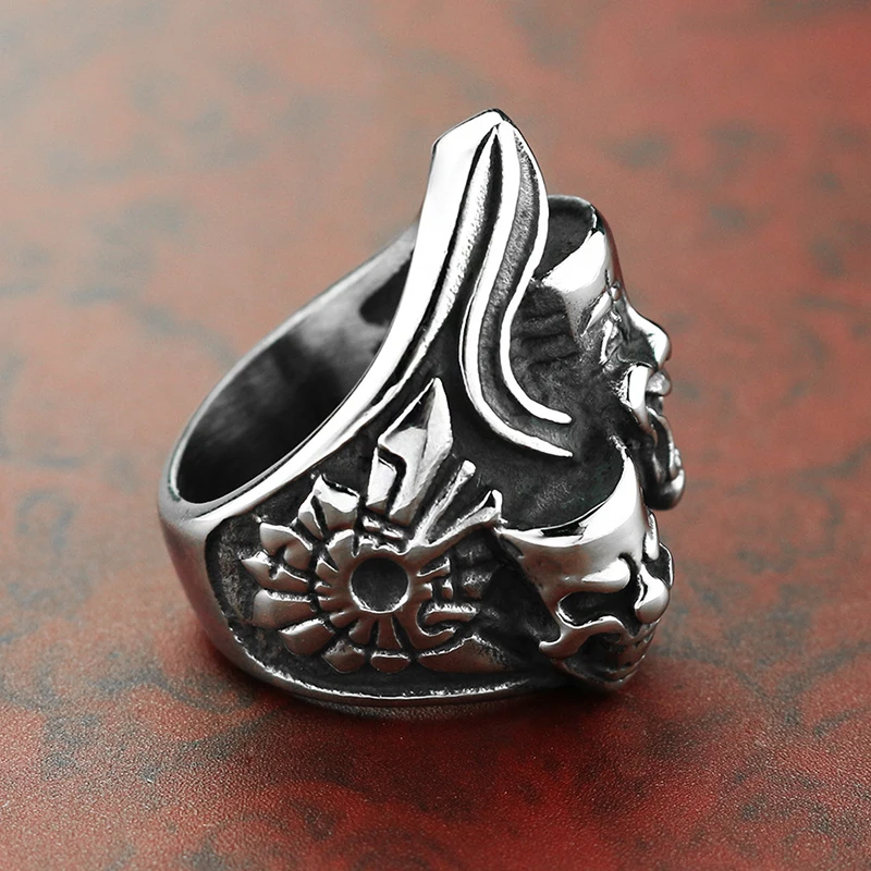 Joyería vikinga: anillo gótico vintage con calavera de payaso, grande y pequeño, para hombre y niño, de acero inoxidable, estilo motero, joyería punk rock de heavy metal.