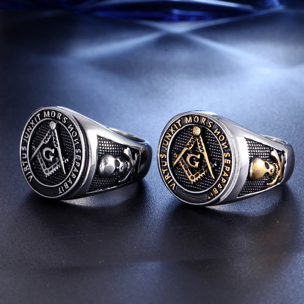 Nombre: Anillo masónico vintage de acero inoxidable con la letra G para hombre, joyería punk, estilo motociclista, anillo de paladín masónico, regalo de moda, tallas 7-13