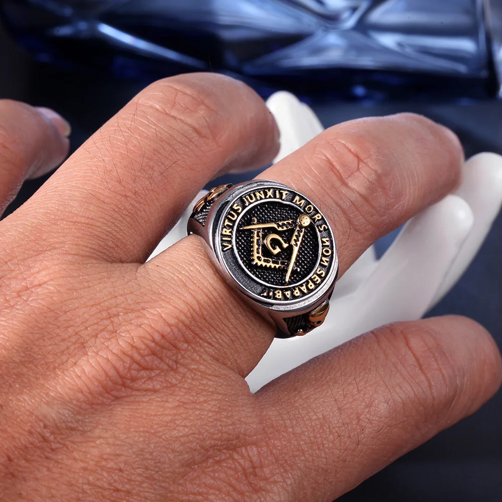 Joyería vikinga: anillo masónico vintage de acero inoxidable con la letra G para hombre, joyería punk, anillo de paladín masónico para hombre, regalo de moda, tallas 7-13