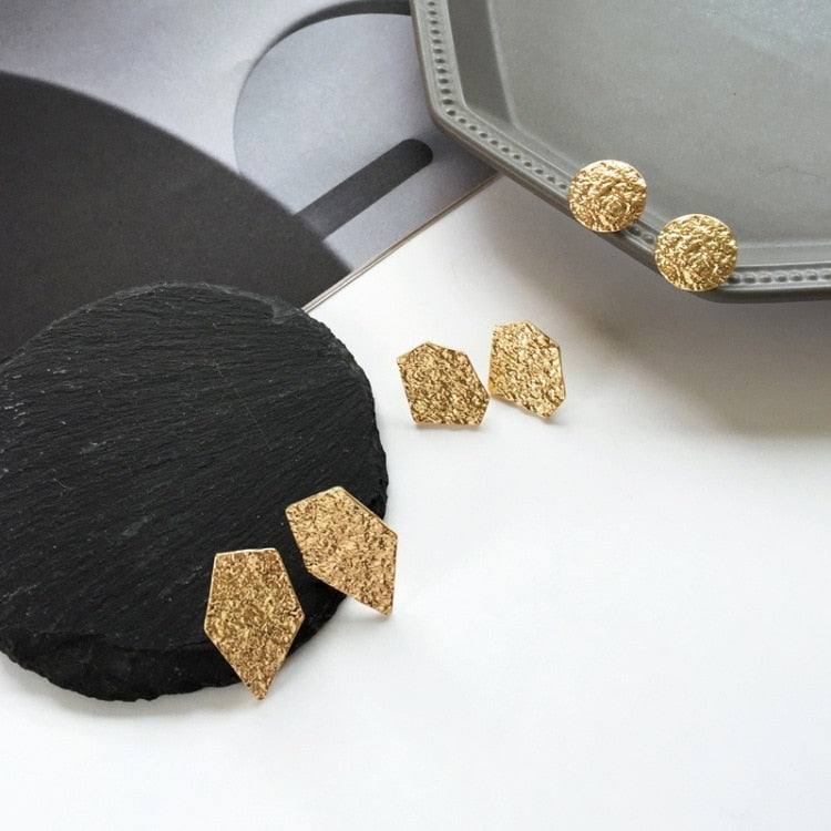 Pendientes de moda vintage con textura, sin perforaciones, geométricos, redondos, irregulares, dorados, sencillos, estilo ZA, para mujer, joyería de fiesta, regalo