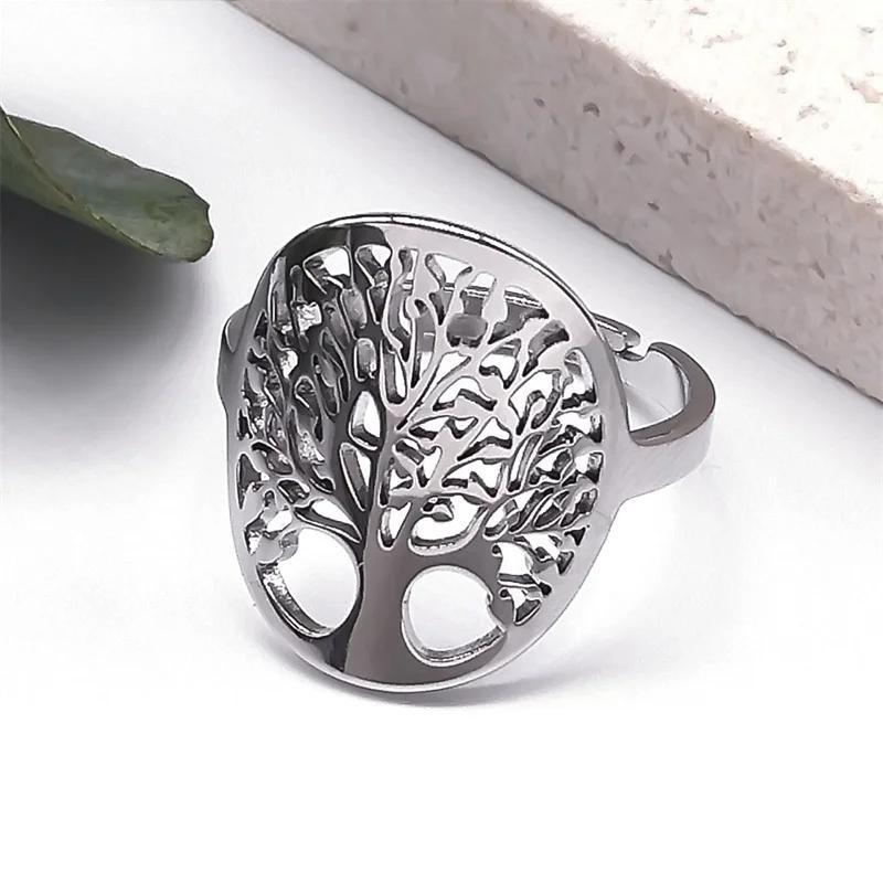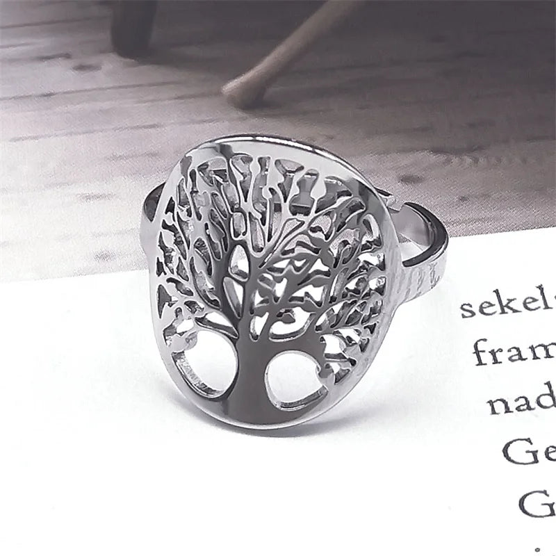 Anillo vikingo vintage con árbol de la vida, de acero inoxidable, ajustable, para hombres y mujeres, joyería de la suerte, regalo de fiesta para parejas.