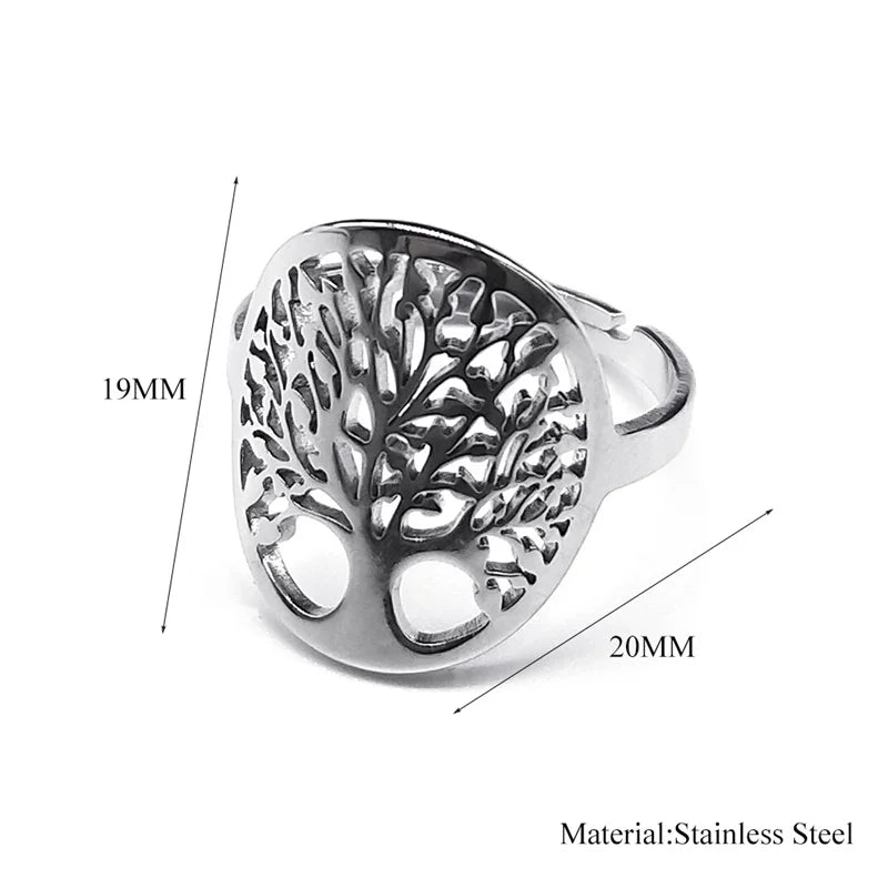 Anillo vikingo vintage con árbol de la vida, de acero inoxidable, ajustable, para hombres y mujeres.