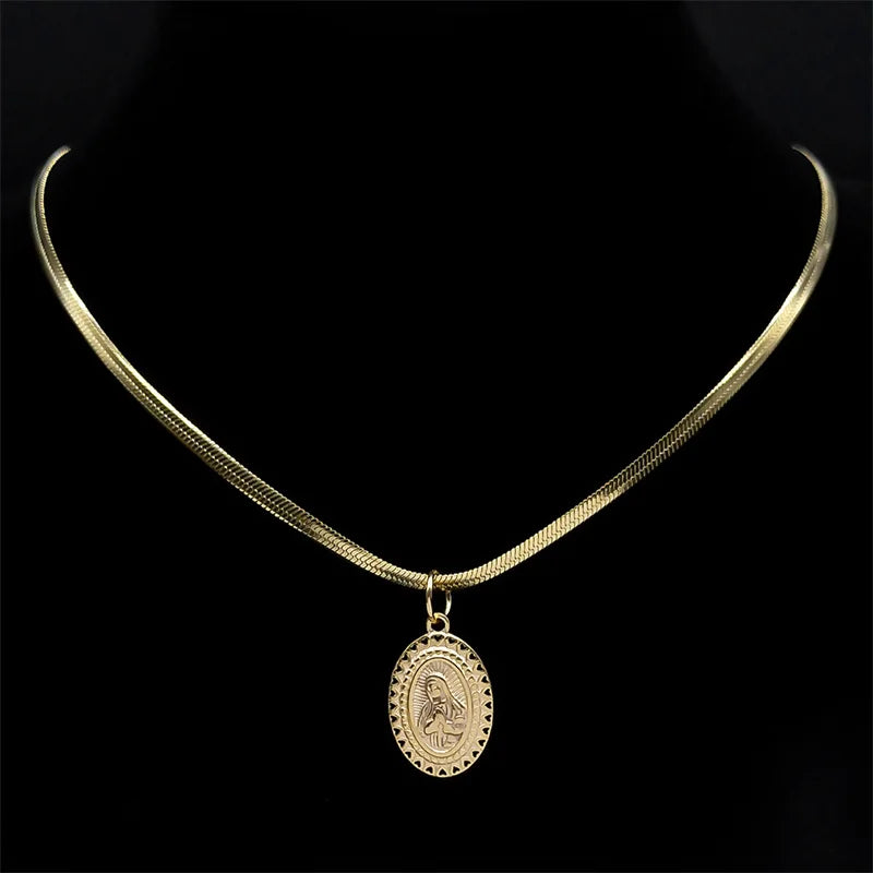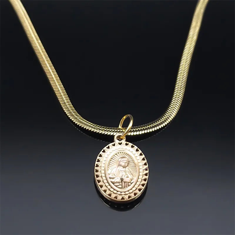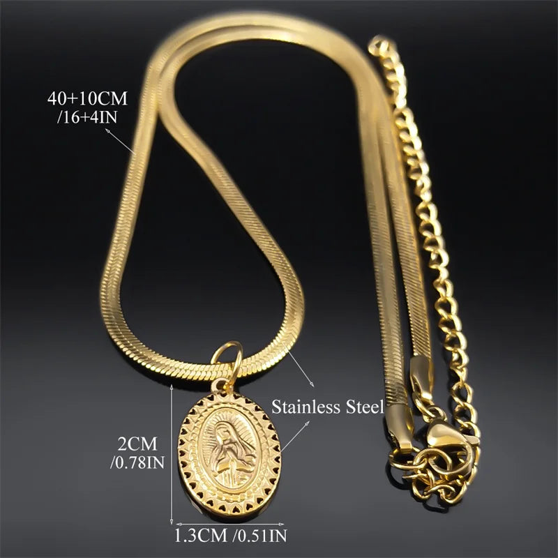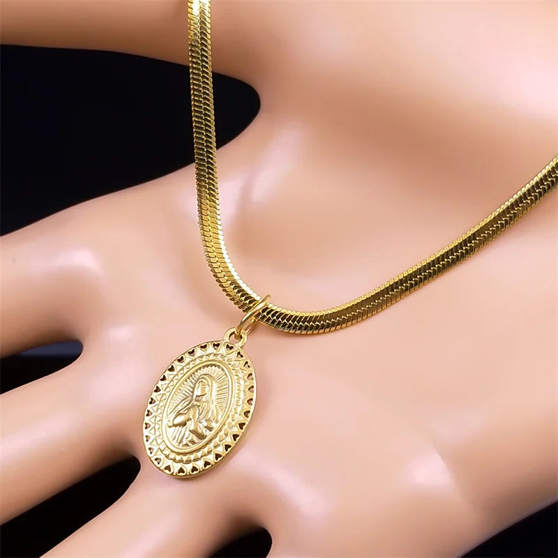 Collar de oración con medalla de la Virgen María para mujeres y hombres, de acero inoxidable, color dorado, para iglesia católica, joyería