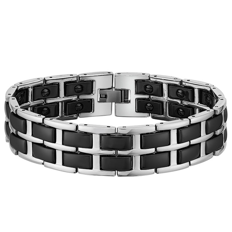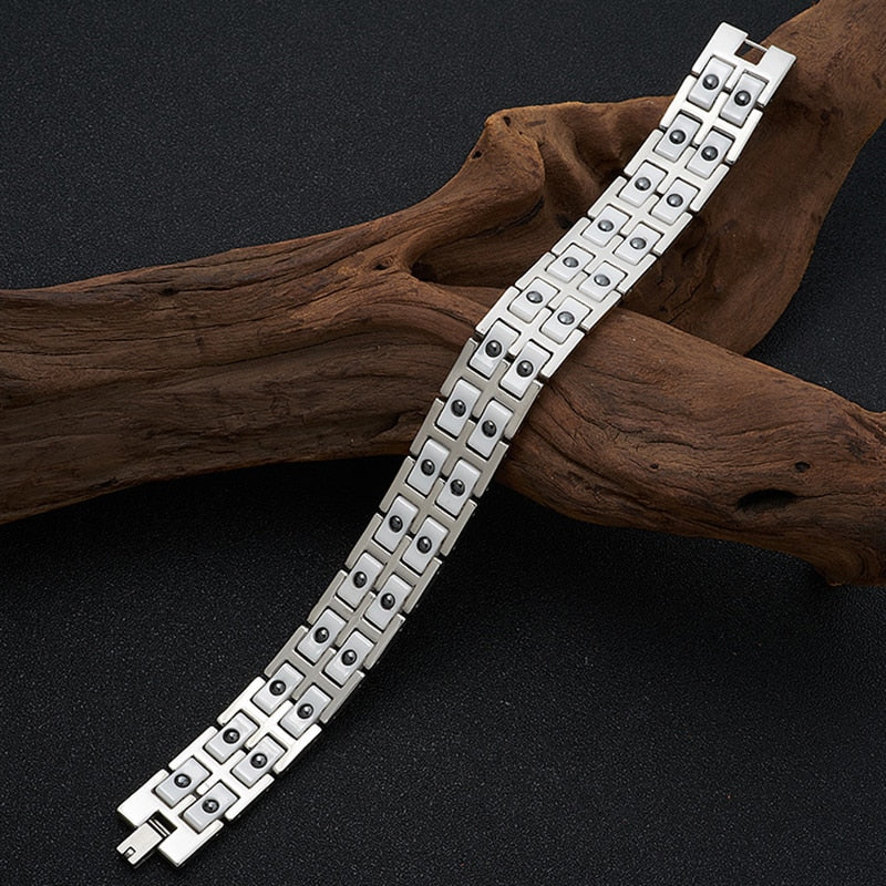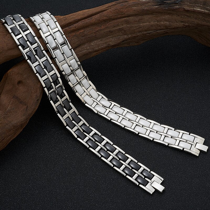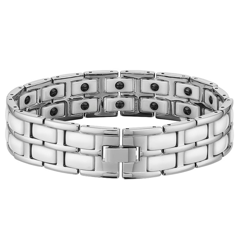 Pulsera magnética de cerámica blanca para hombre, con imanes de acero inoxidable para aliviar el dolor de artritis y el síndrome del túnel carpiano.