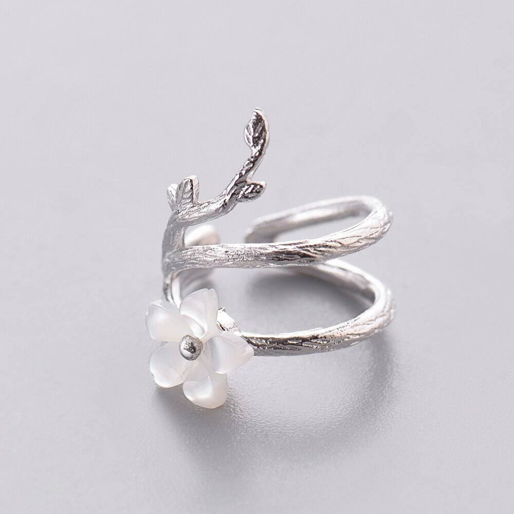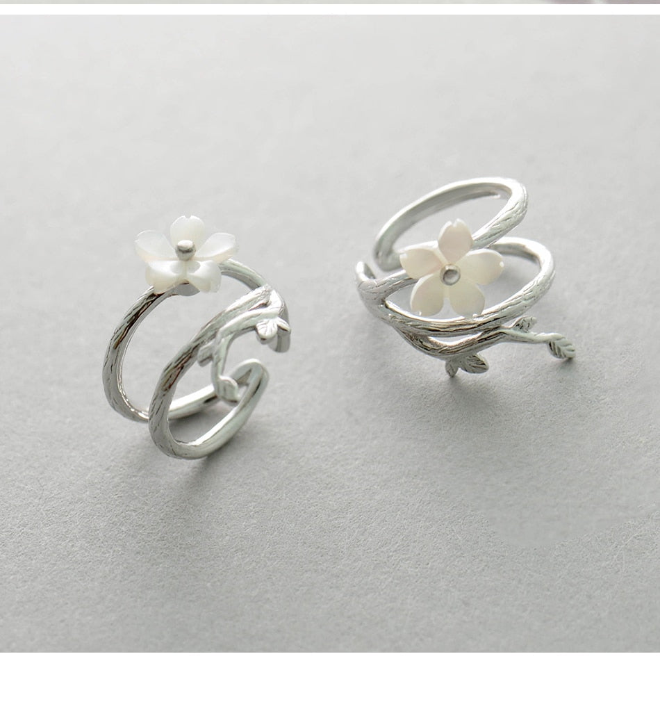 Pendientes de clip de flor de cerezo blanca en plata 925, pendientes de puño redondos con flores sin perforación