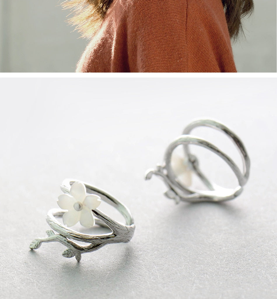 Pendientes de moda: pendientes de clip de flor de cerezo blanca de plata 925, pendientes de puño redondos de flores sin perforación para mujer, joyería fina elegante