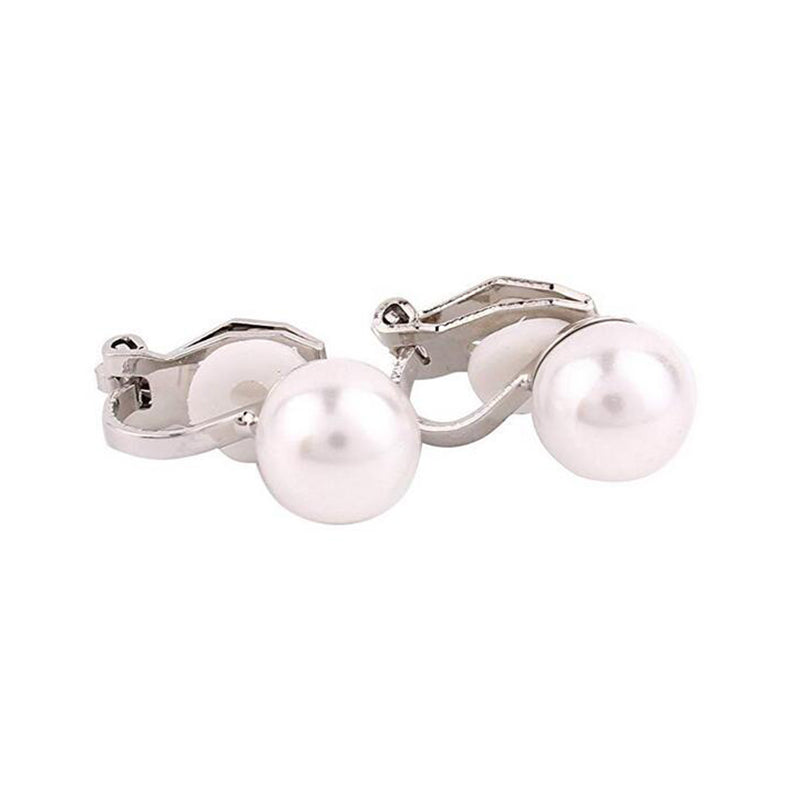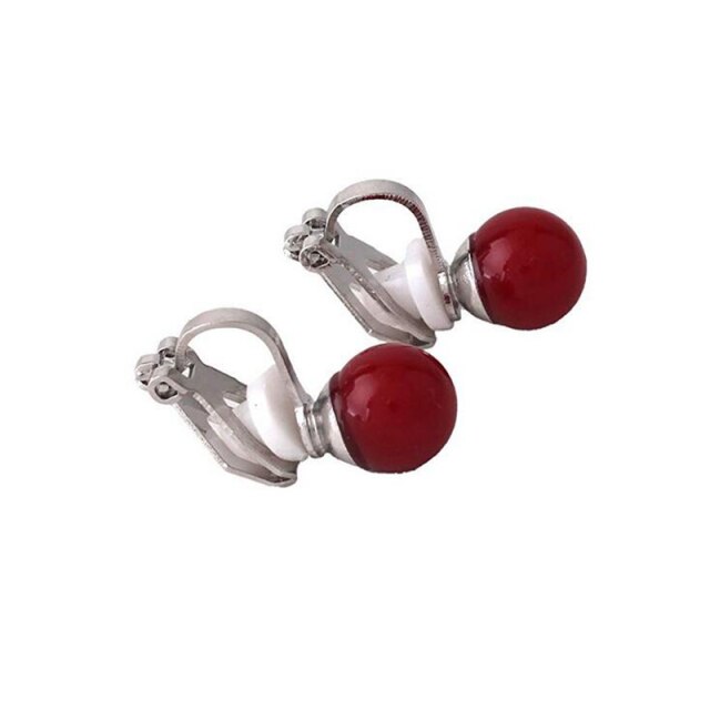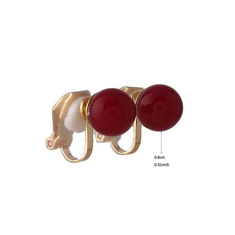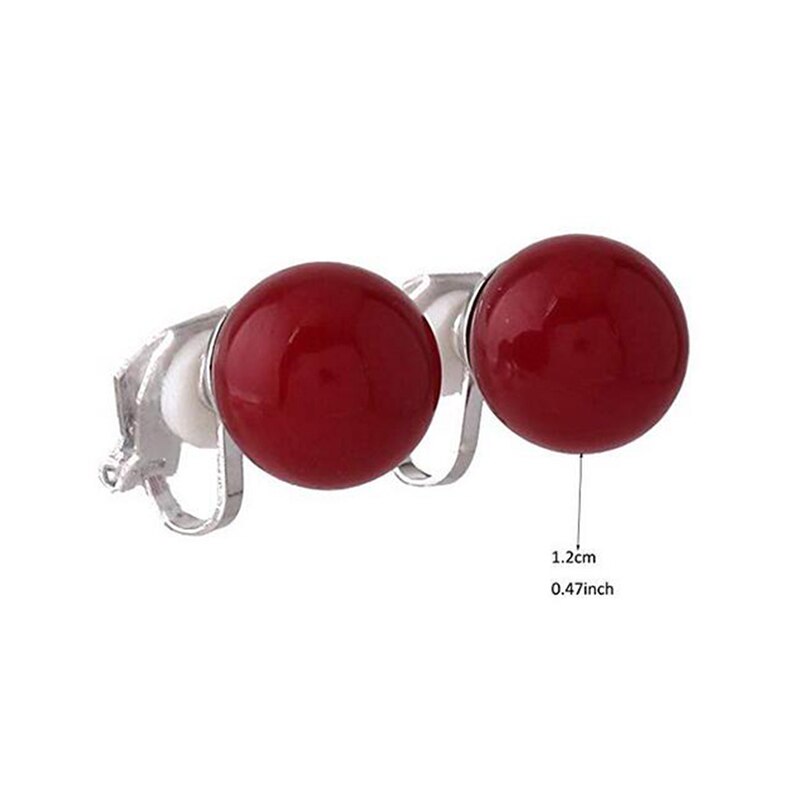 Pendientes de clip con perlas sintéticas de color blanco y rojo sin perforar para mujer