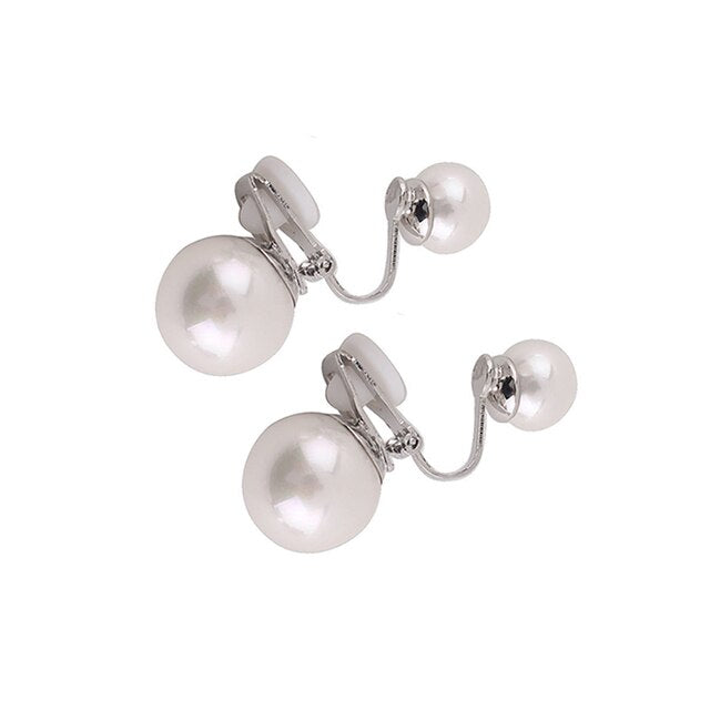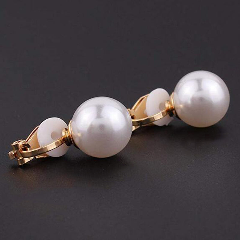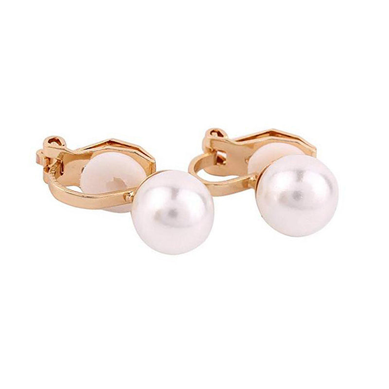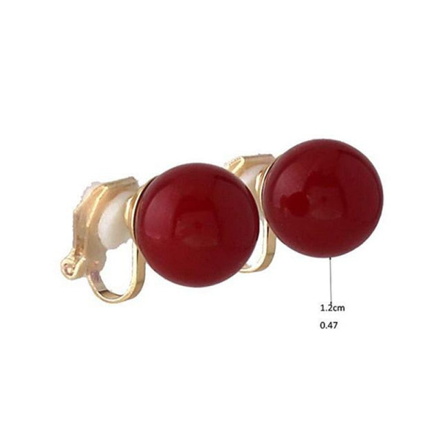 Pendientes de moda con clip de perla sintética de color blanco y rojo, sin perforaciones, para mujer, con abalorios populares chapados en oro o plata.