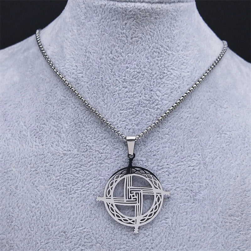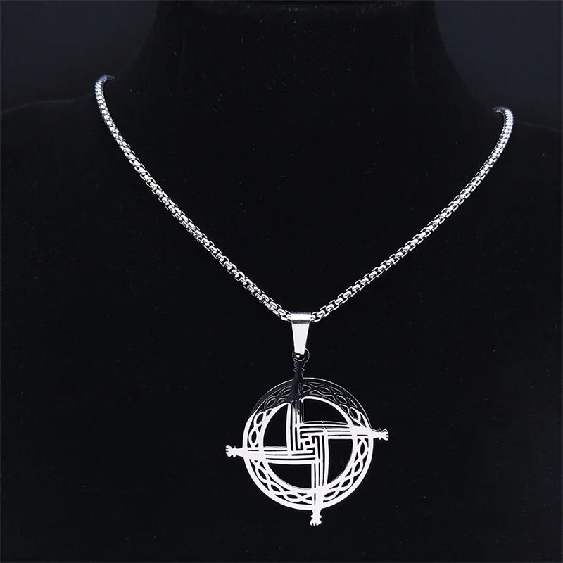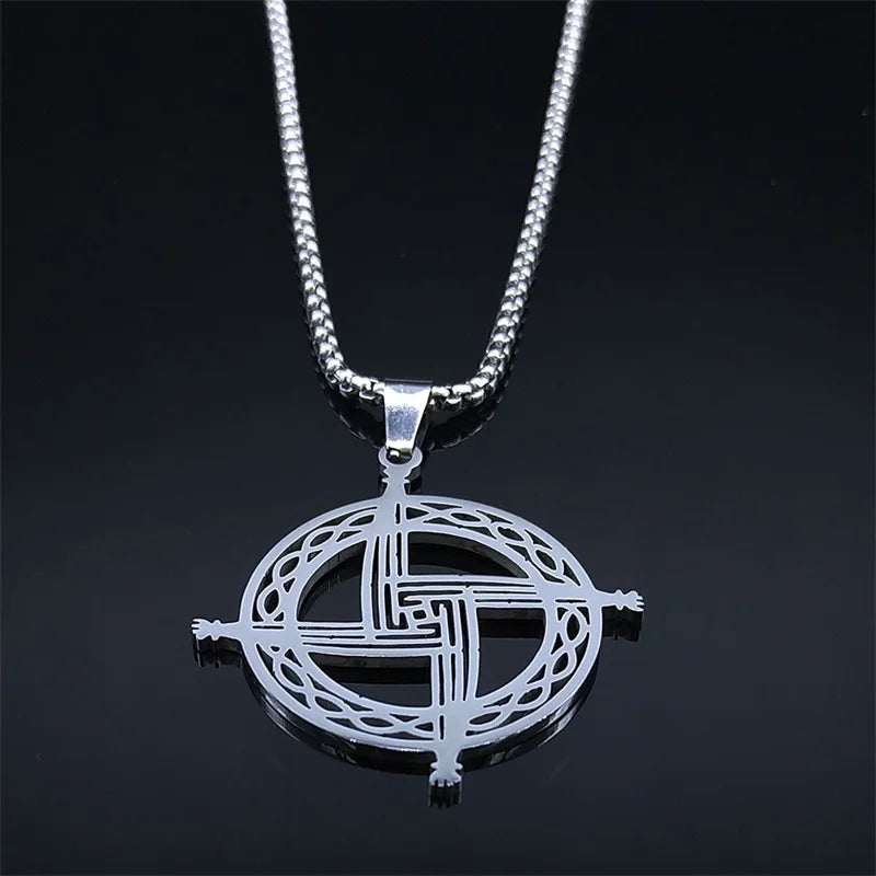 Collar con cruz irlandesa celta de Wicca, acero inoxidable, color plata, nudo celta, talismán, joyería mágica