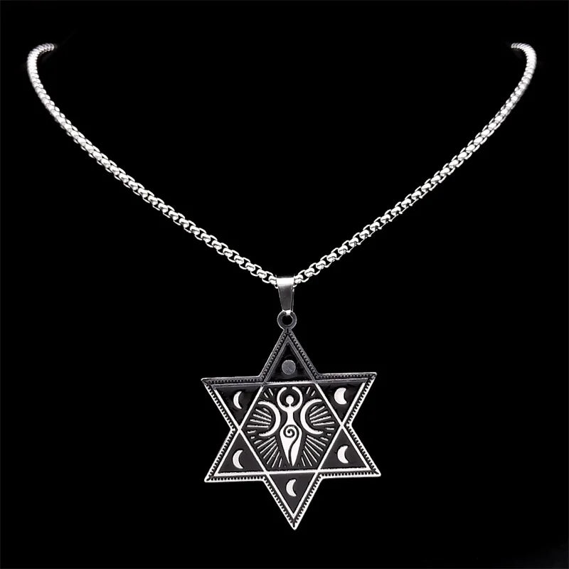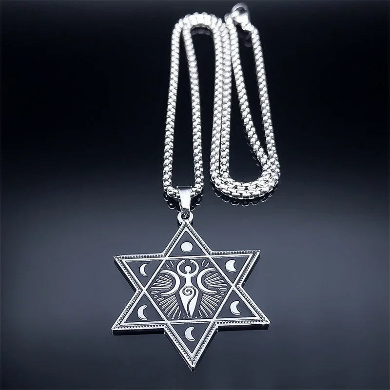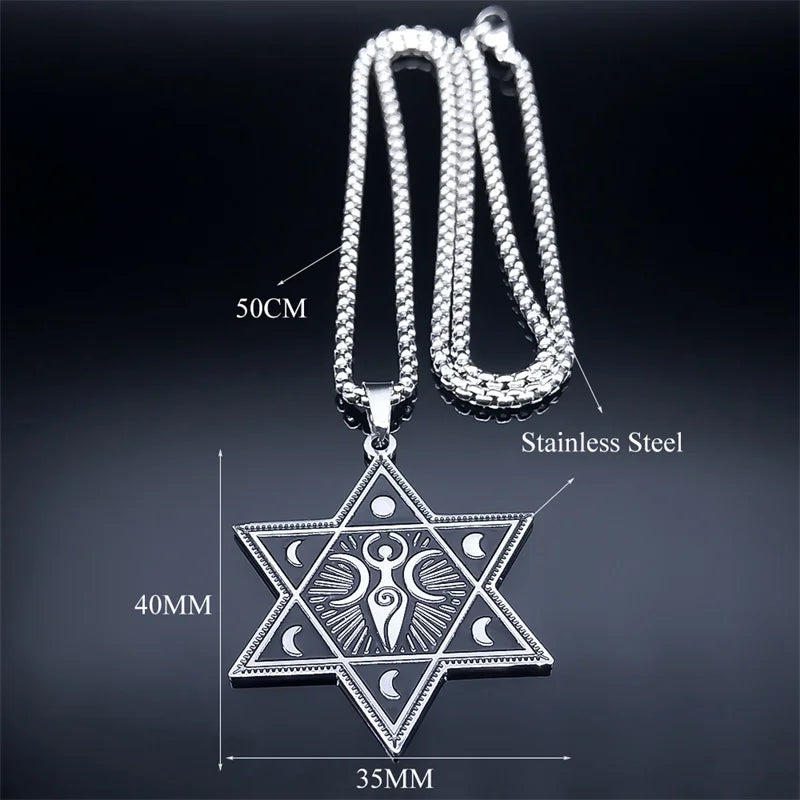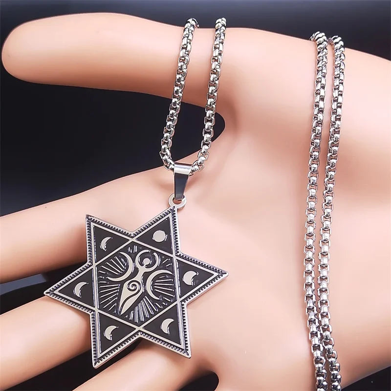 Collar de acero inoxidable con forma de media luna de la diosa de la triple luna, con hexagramas y fases lunares ocultas, amuleto de bruja, joyería