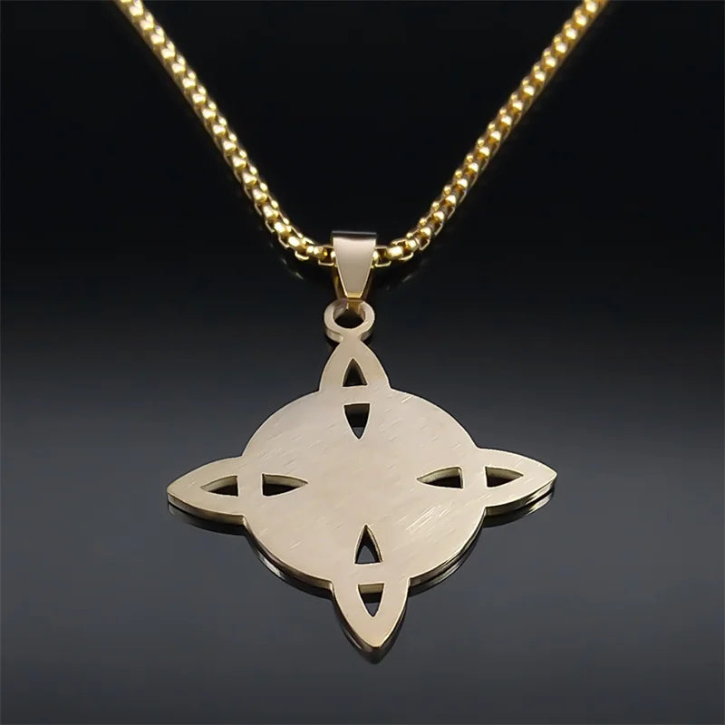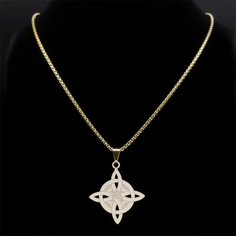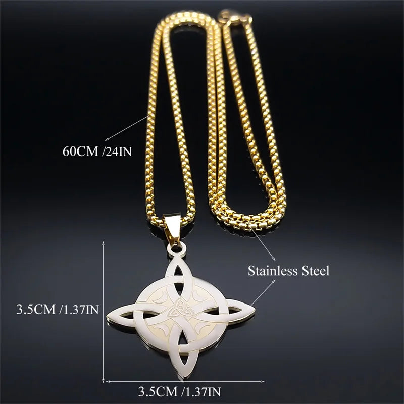 Collar de luna con nudo celta de bruja para mujer/hombre, acero inoxidable, color dorado, nudos de la trinidad, joyería, nudo de bruja