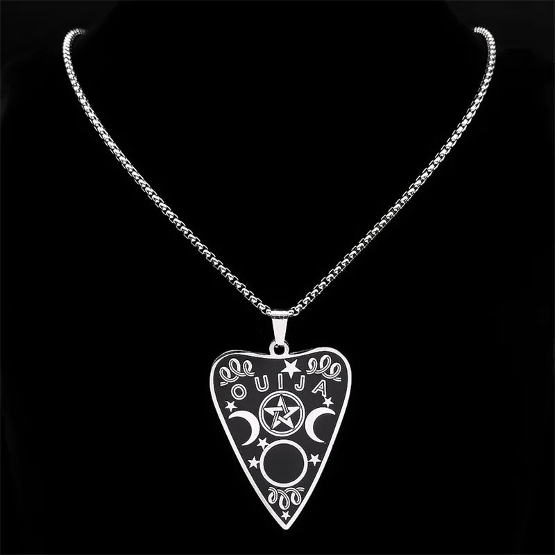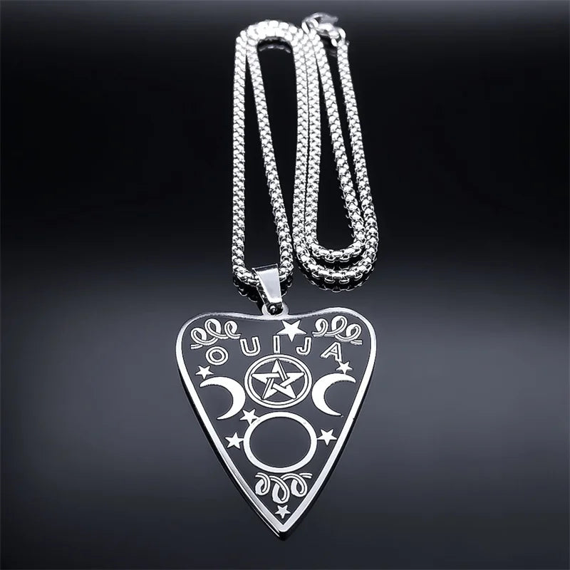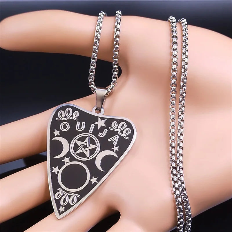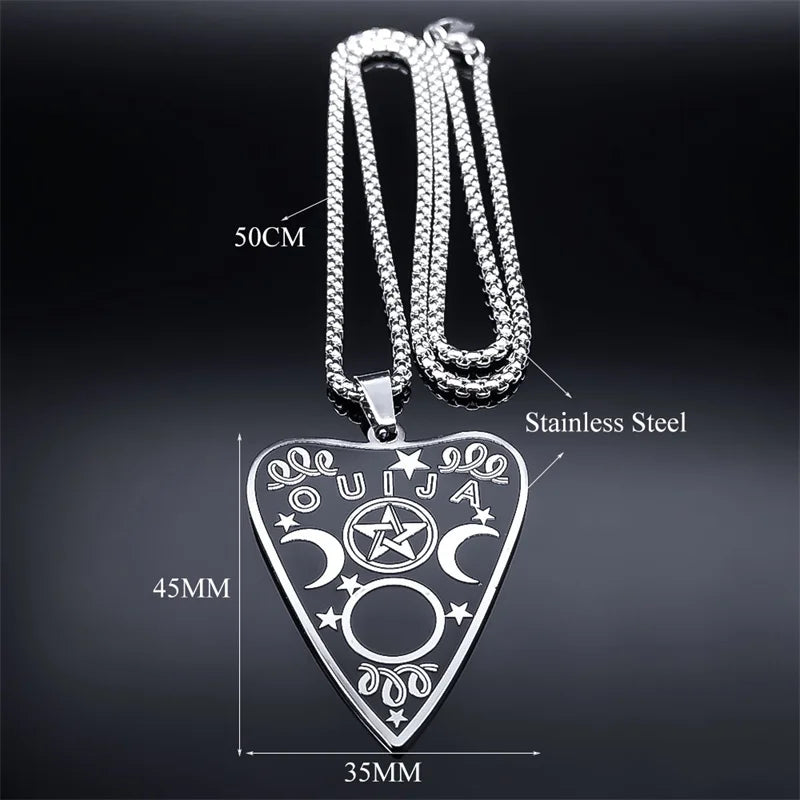 Collar de acero inoxidable con diseño de bruja, tabla Ouija de adivinación, planchette mágico, diosa de la triple luna, collares, joyería gótica de regalo