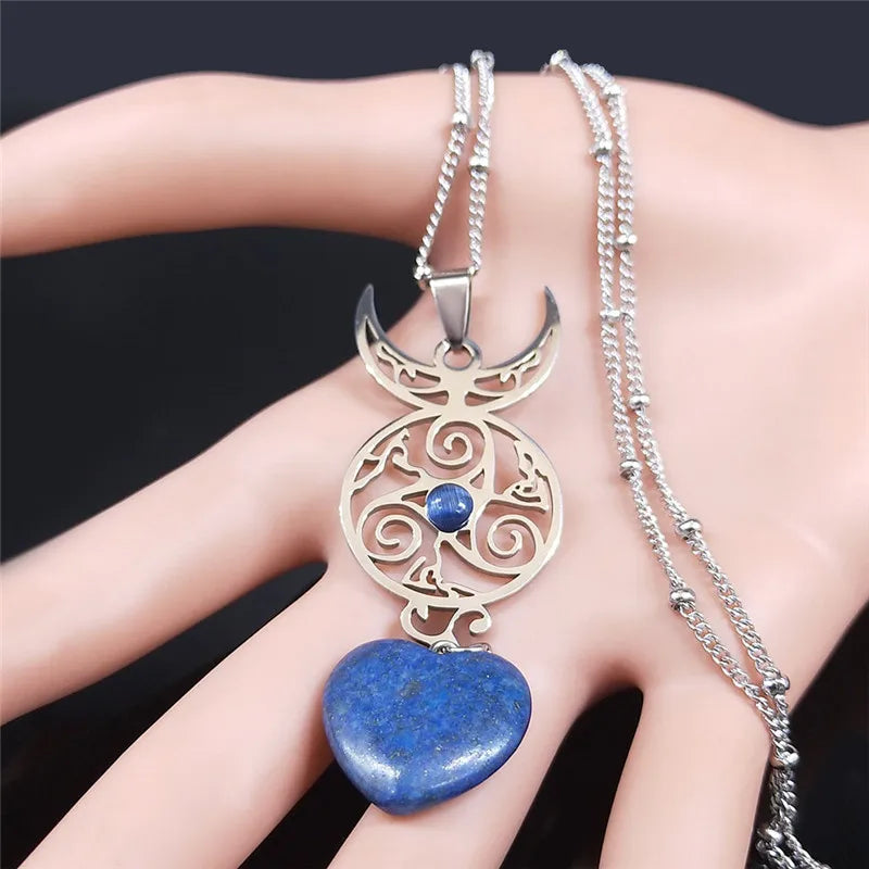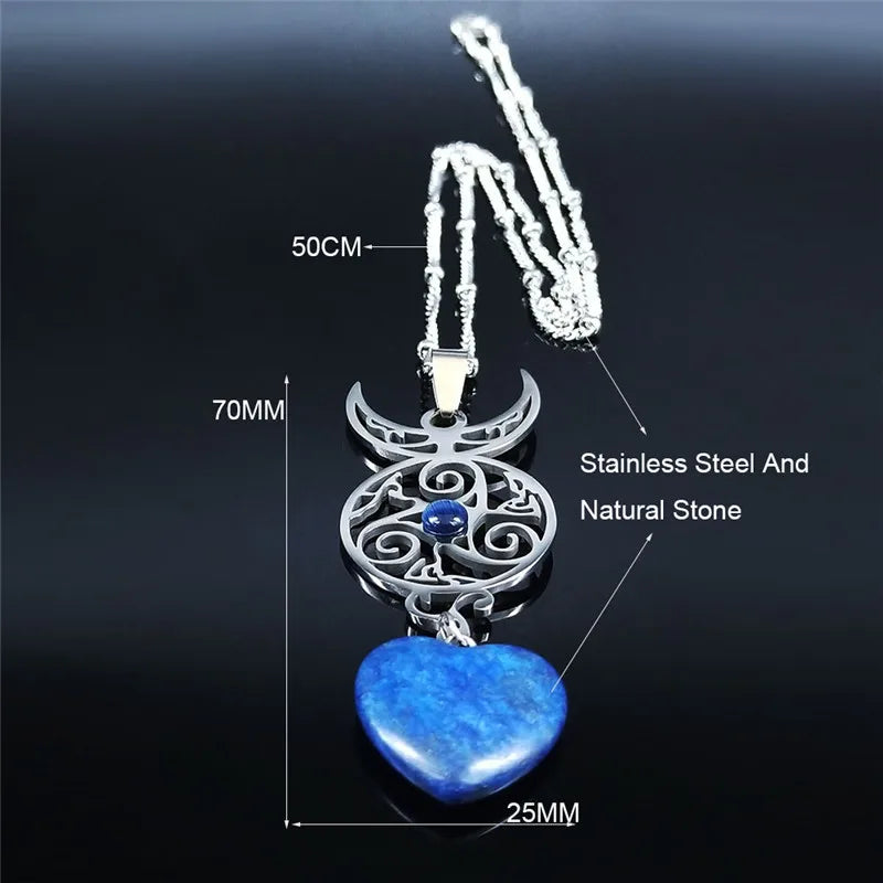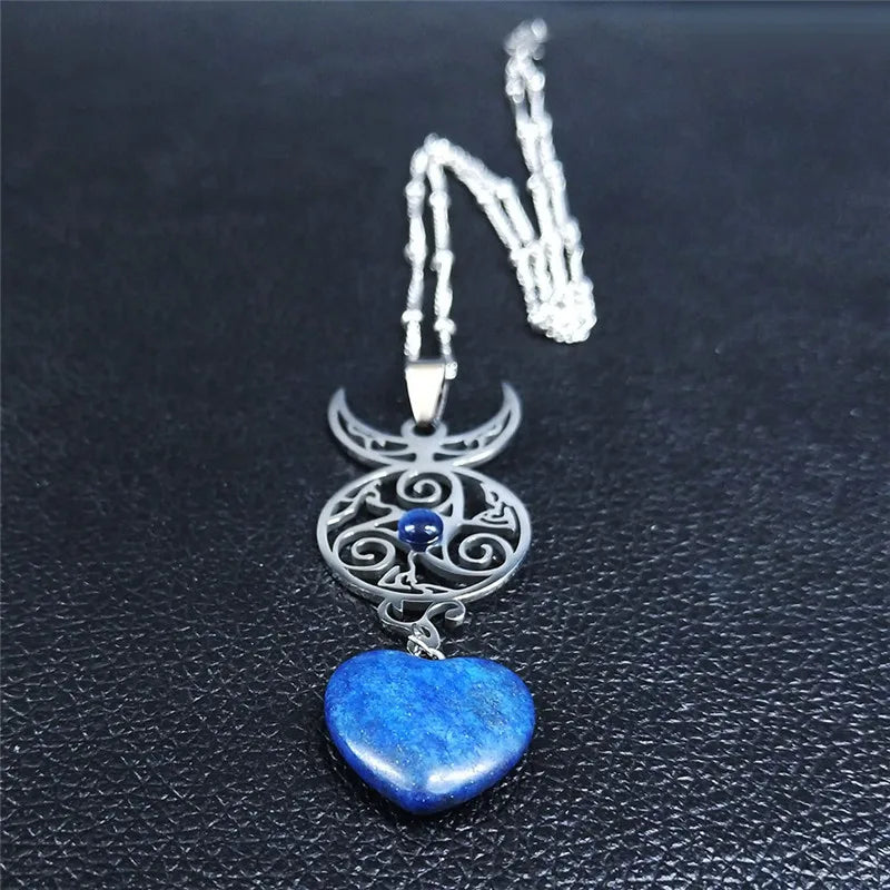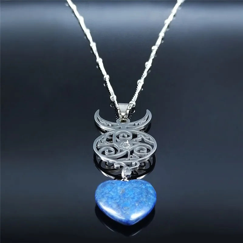 Estilo: Collar de acero inoxidable con piedra natural y corazón de triskelion de luna de bruja